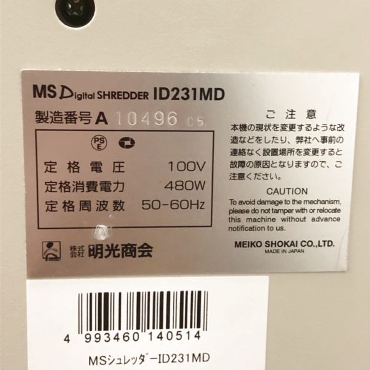 スパイラルカットシュレッダー MS-ID231MD 明光商会 中古OA機器 CD・FPなどのメディア裁断可能- 名古屋千種店