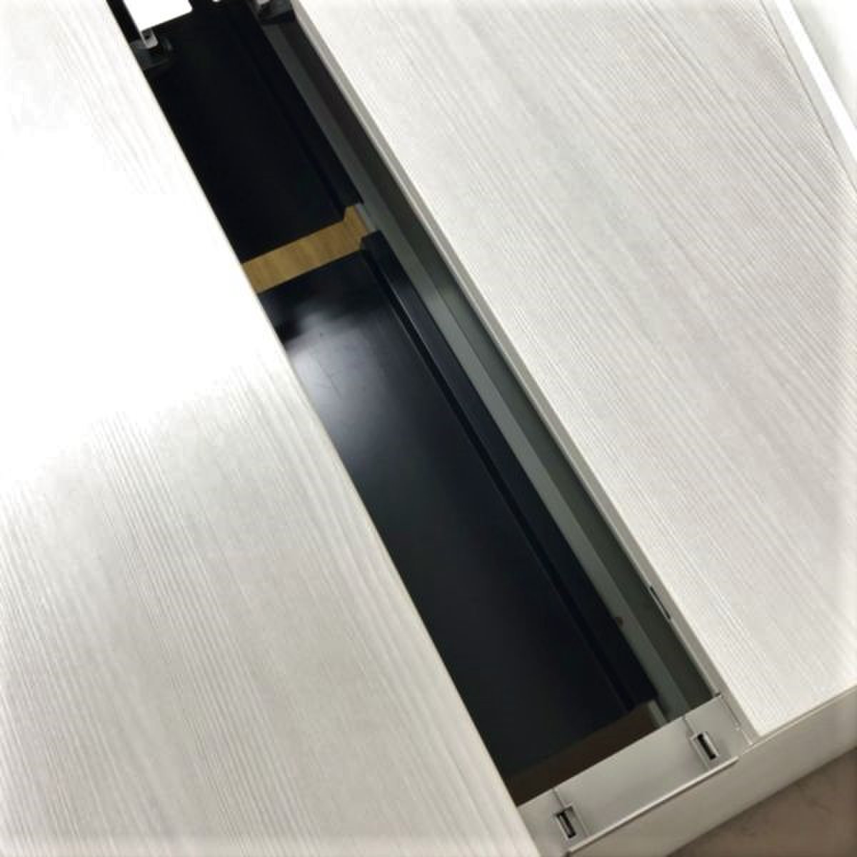 天板はW1200幅の物を3枚横に並べて組み合わせ(向い合わせ天板は合計で6枚構成)