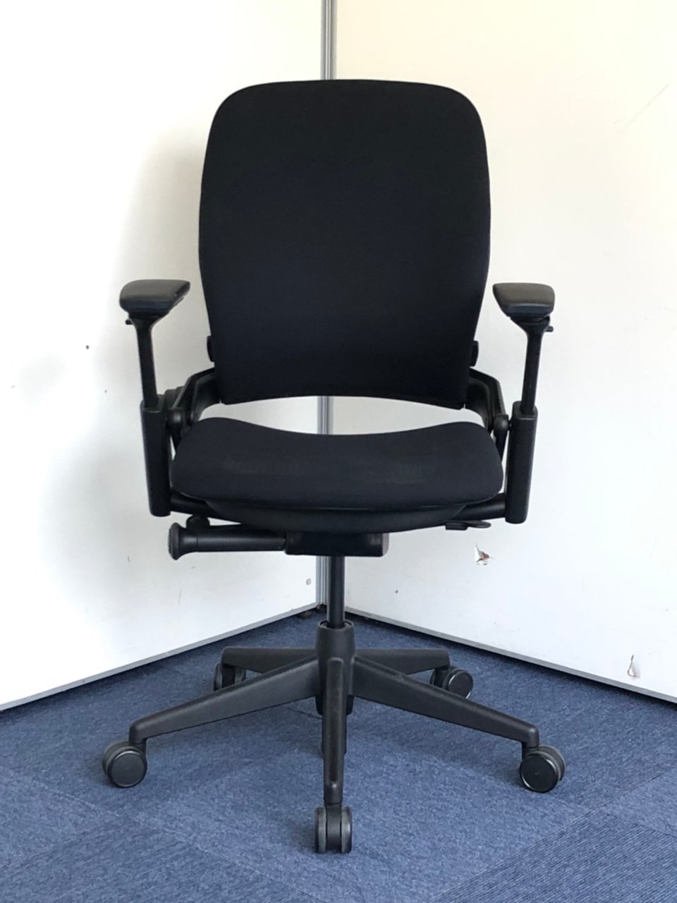 【限定1脚】ワークチェア アームレスト付 可動肘 ブラックフレーム オススメ(おすすめ) 大人気 ・Steel case/スチールケース ・Leap-v2/リープV2 ※横浜本店撮影画像※