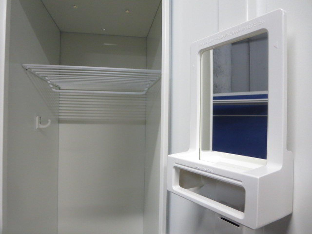 - 完備鏡、ネクタイ掛け、傘立て、網棚、フック等が全て完備されている。