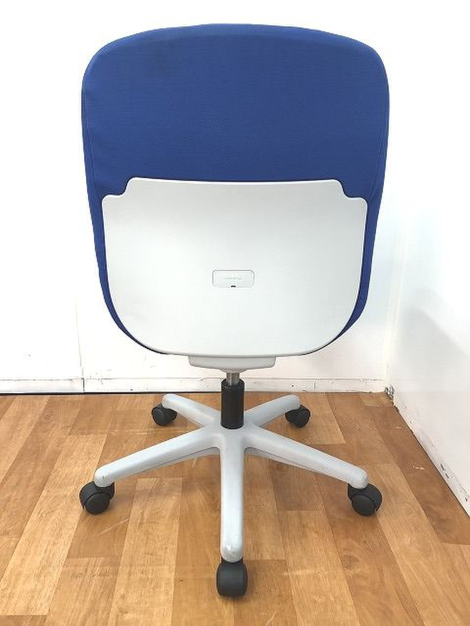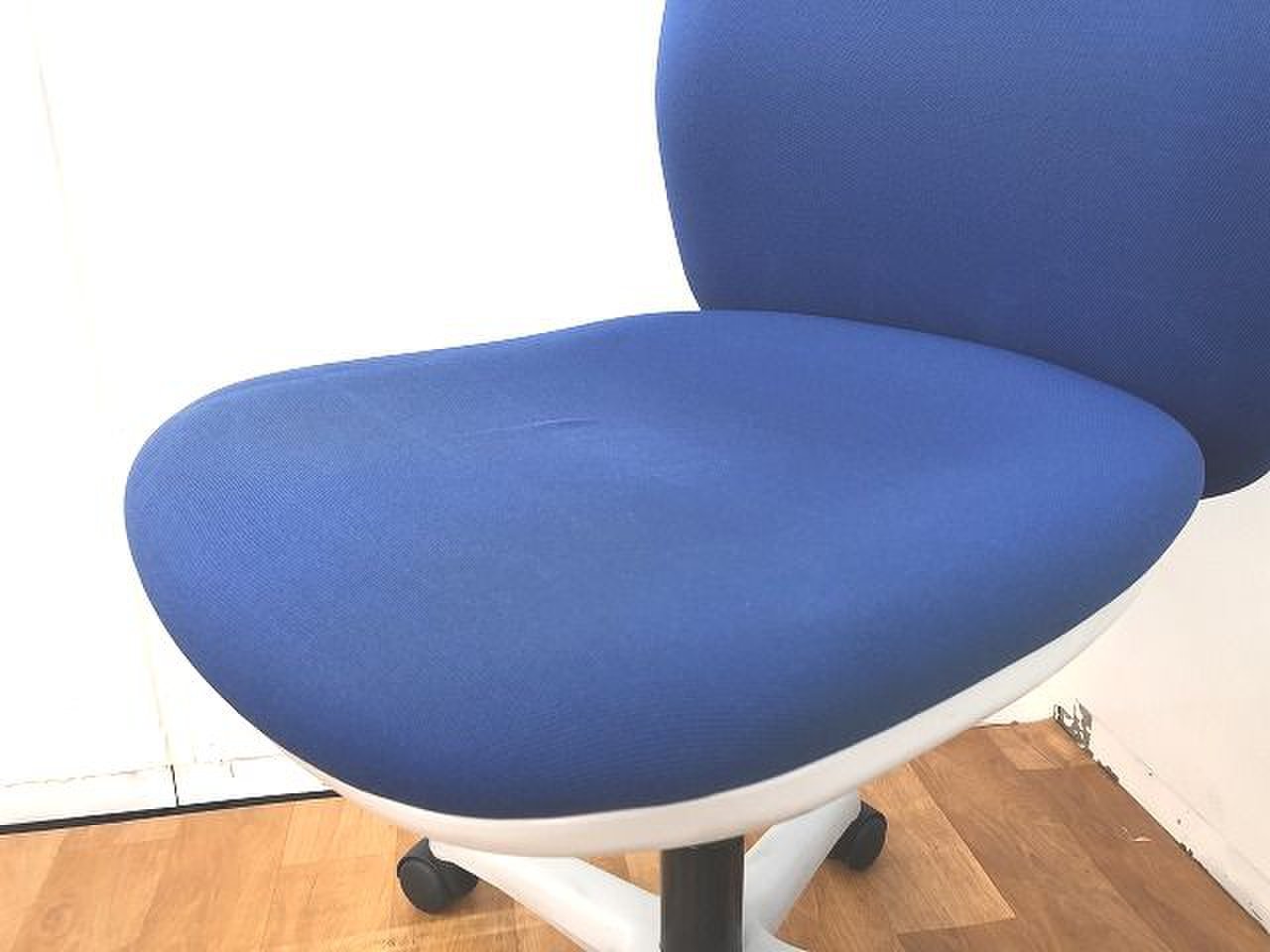 ★ウチダ製 エニーザ 肘無し ダークブルー ローバック ホワイトフレーム シンプルでコンパクトな見た目が可愛らしい! 小さめのデスクとも相性抜群! 肘無しローバックチェア!!