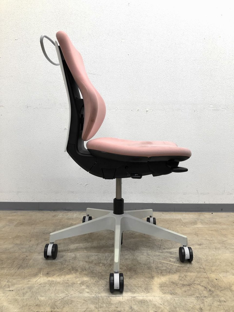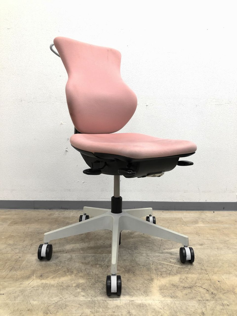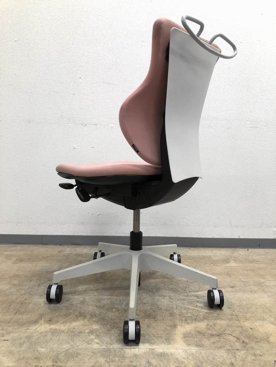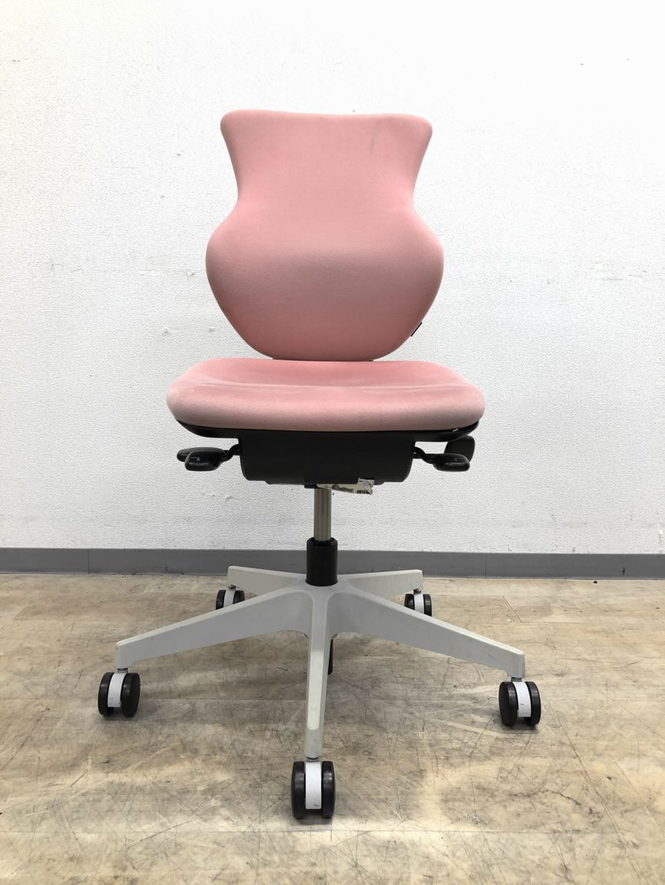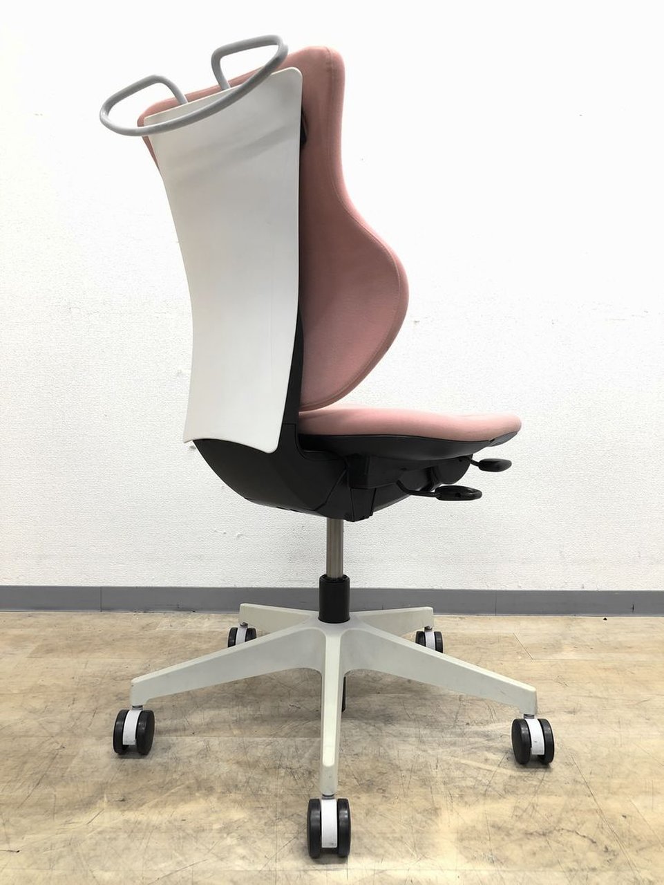 - 女性の作業姿勢に多く見られる2つの姿勢を、美しく支える背もたれ形状です。後傾しても背のラインを崩しません。