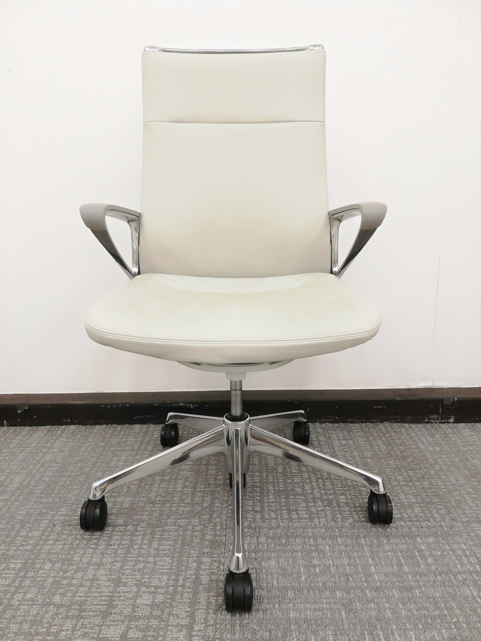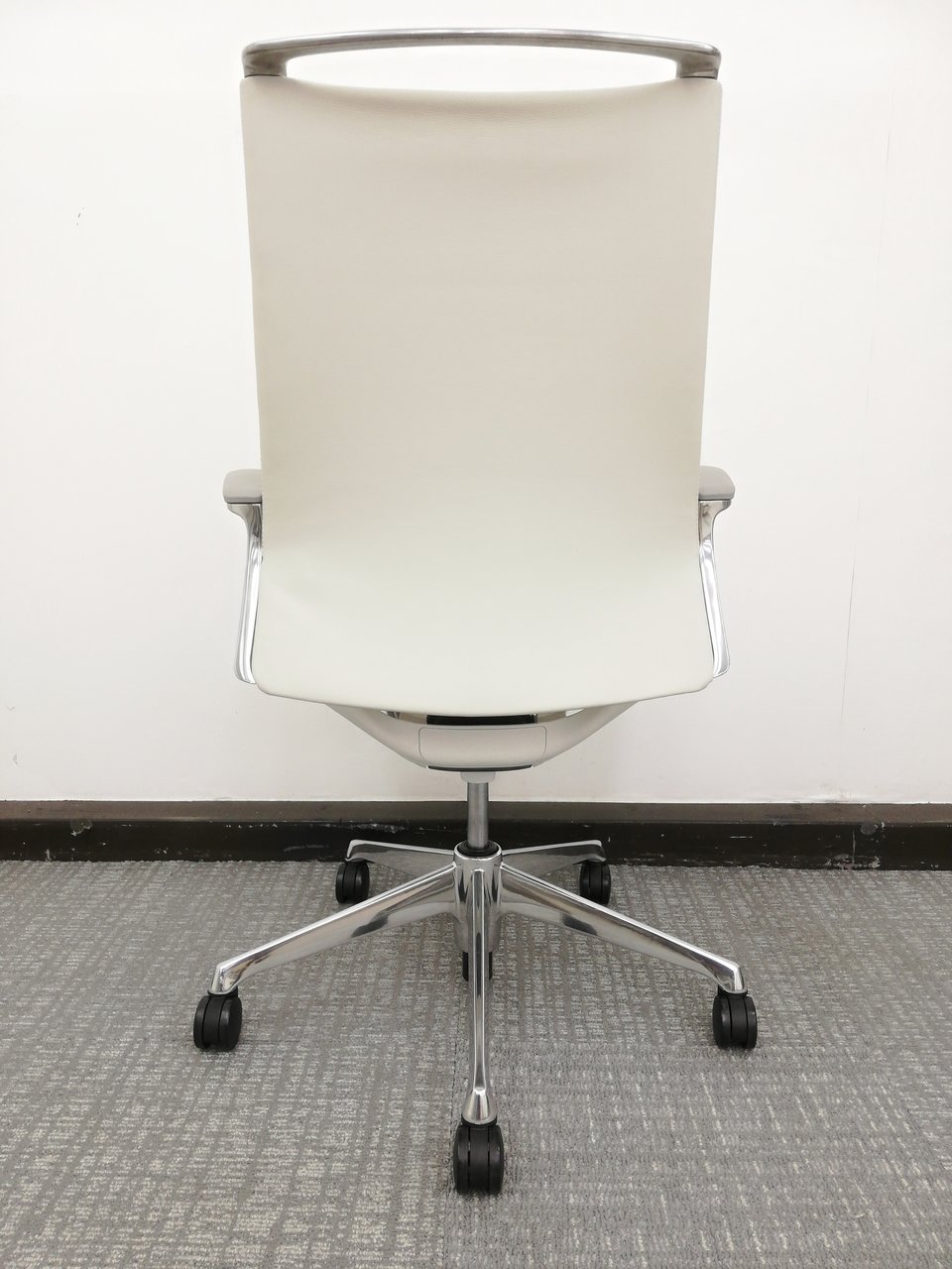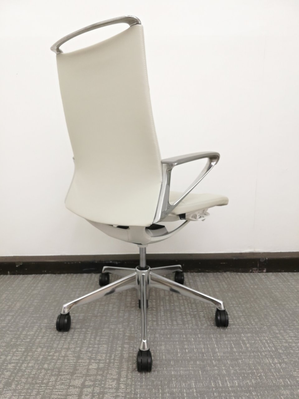 【肘にシミあり状態!】ホワイト革張りアルミフレーム仕様!モード(MODE)チェア春日部入店!◆オカムラ製サーキュラーバリューCO2削減量の算出について