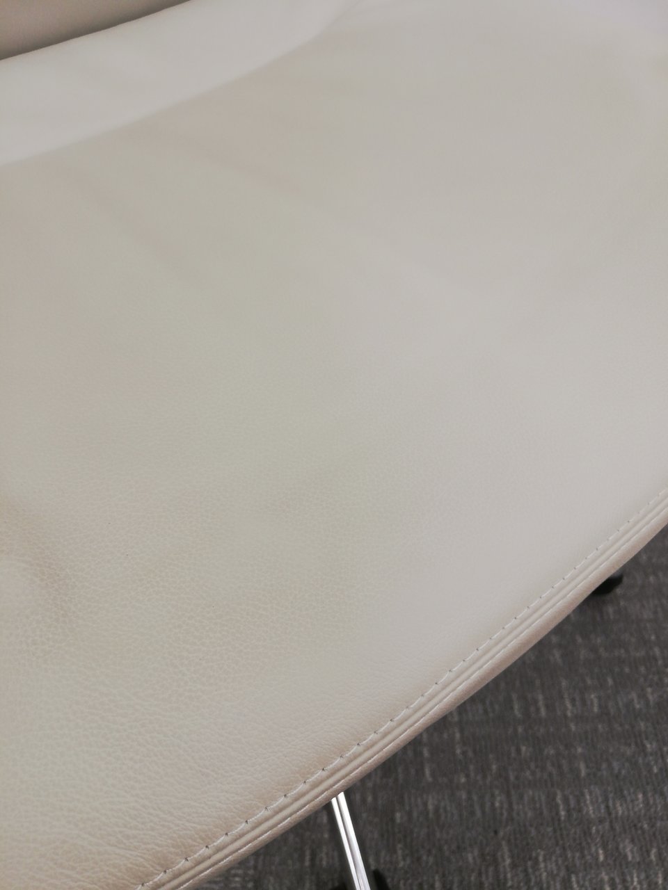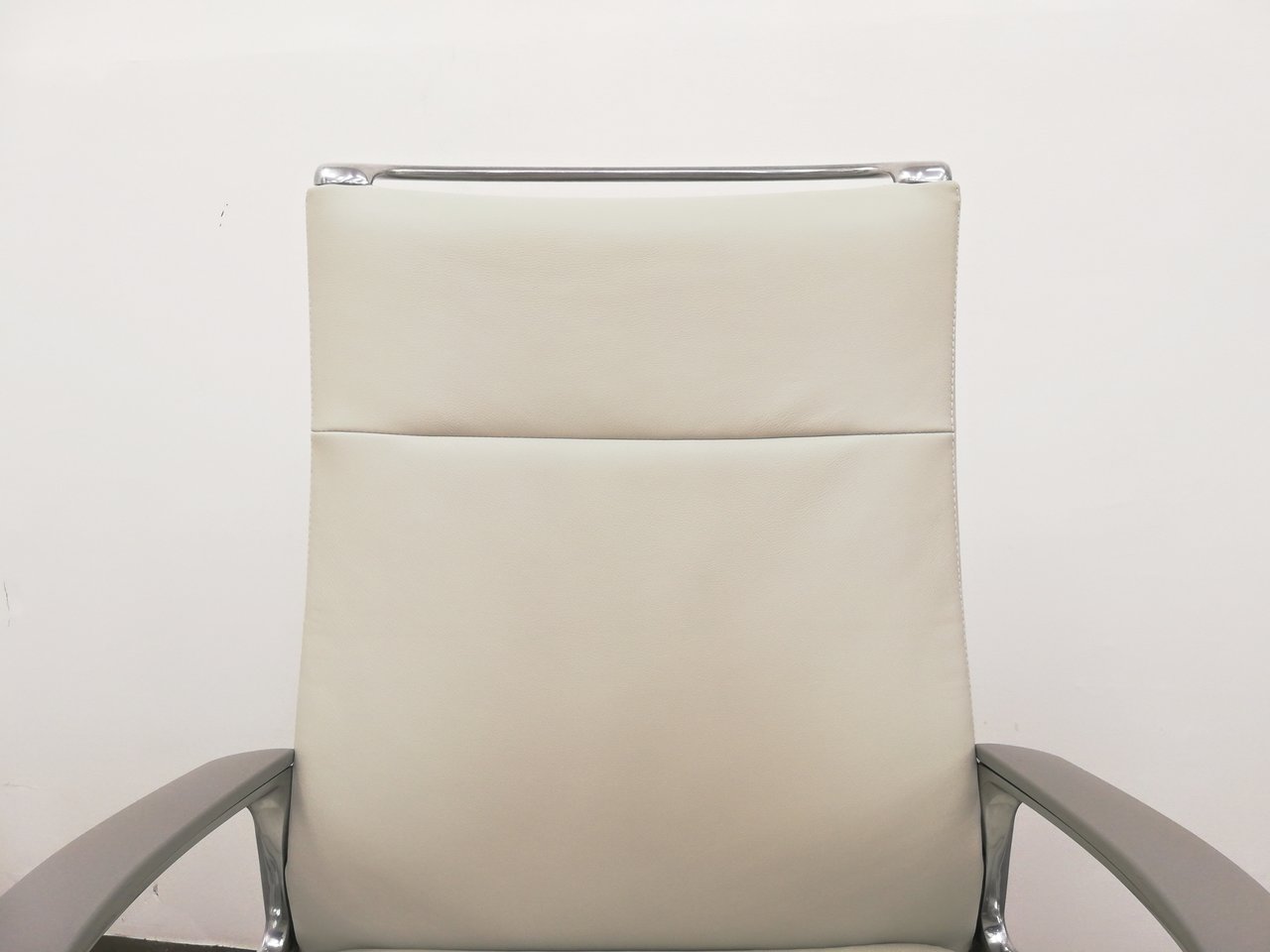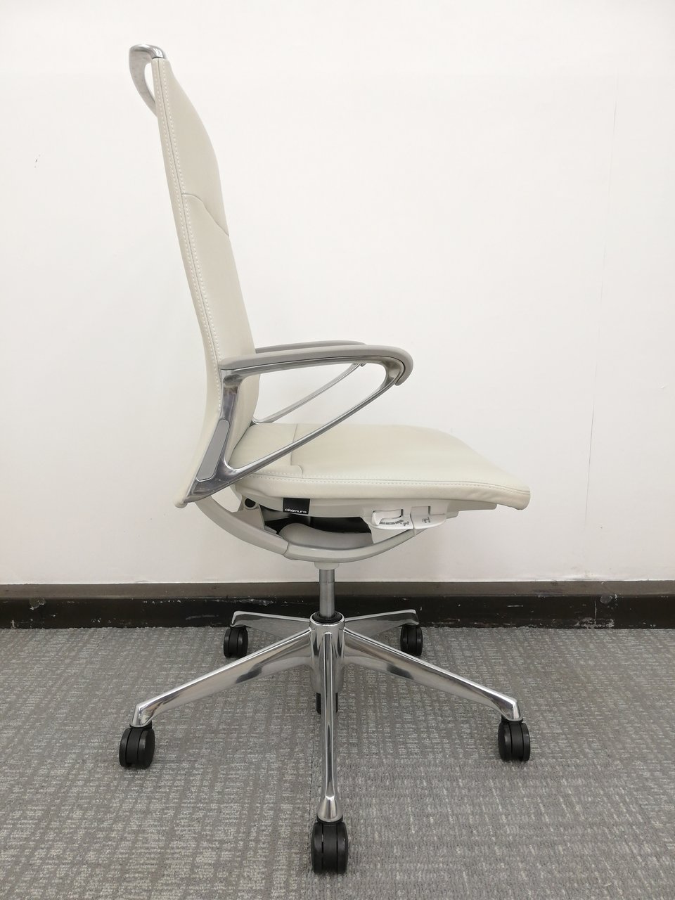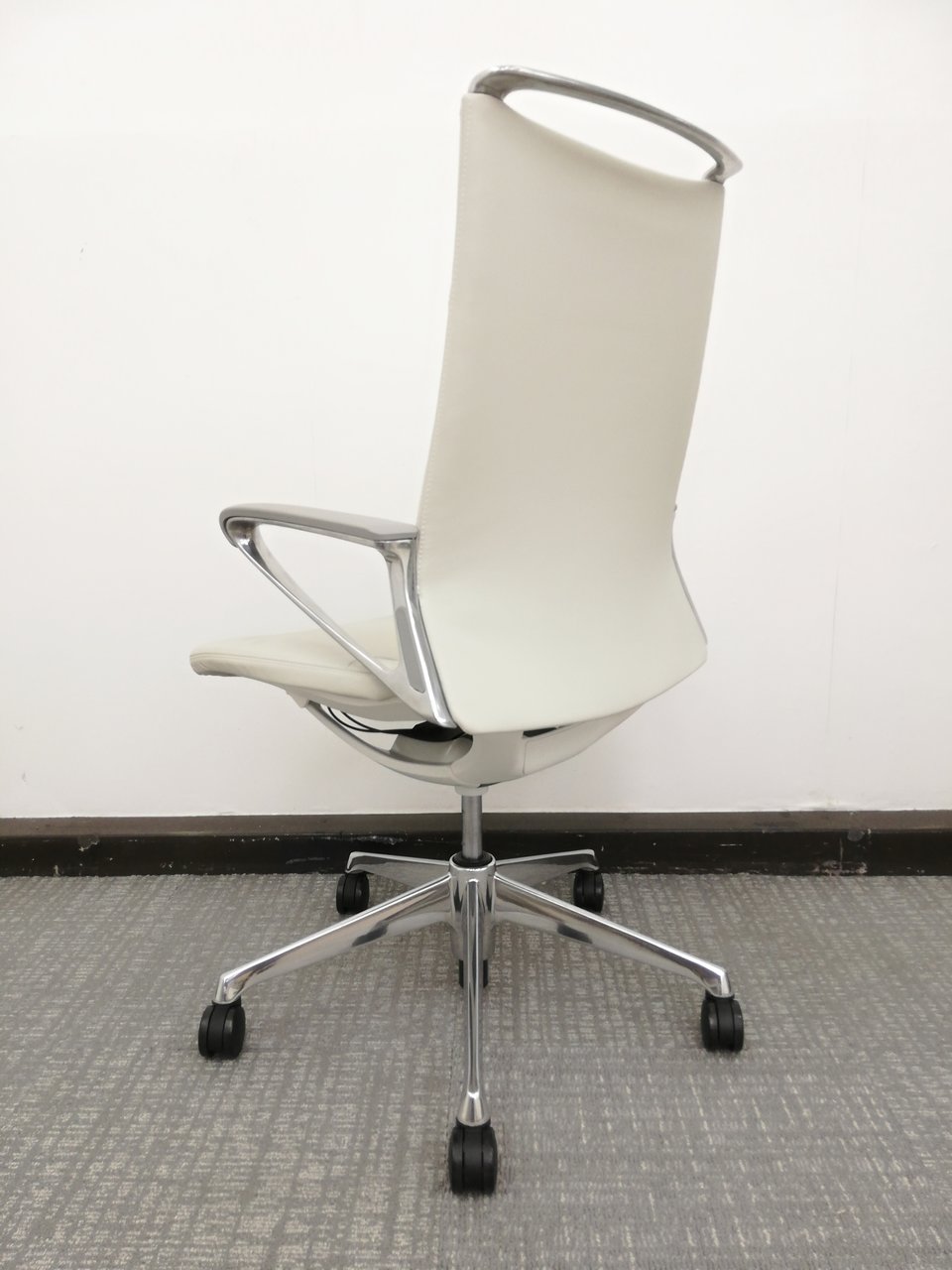 【肘にシミあり状態!】ホワイト革張りアルミフレーム仕様!モード(MODE)チェア春日部入店!◆オカムラ製サーキュラーバリューCO2削減量の算出について