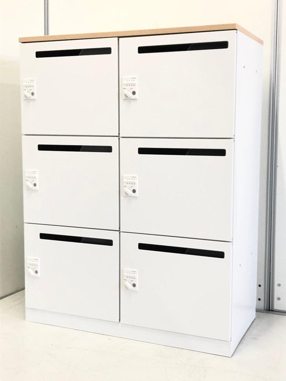 【2台のみ】人気のホワイトと木目調天板が人気の6人用メールロッカー!ダイヤル錠でラクラク管理!!- 大阪梅田本店