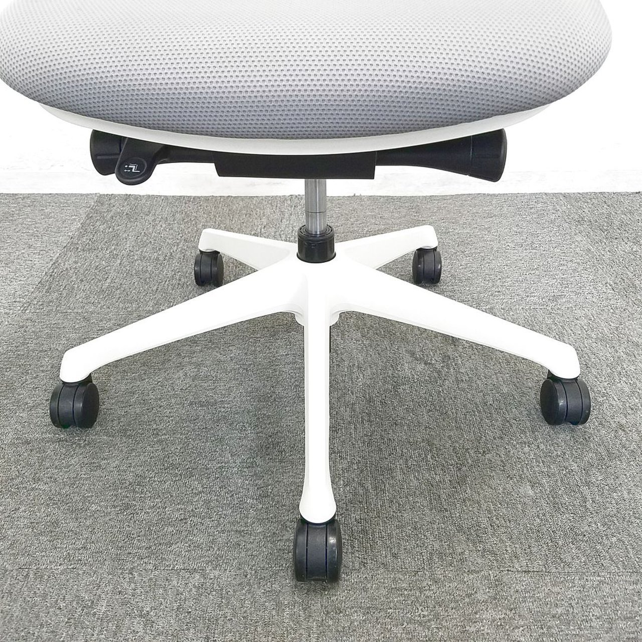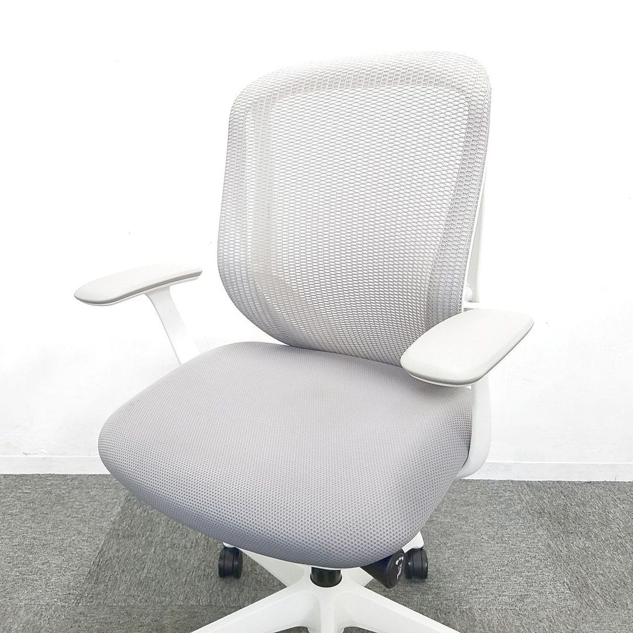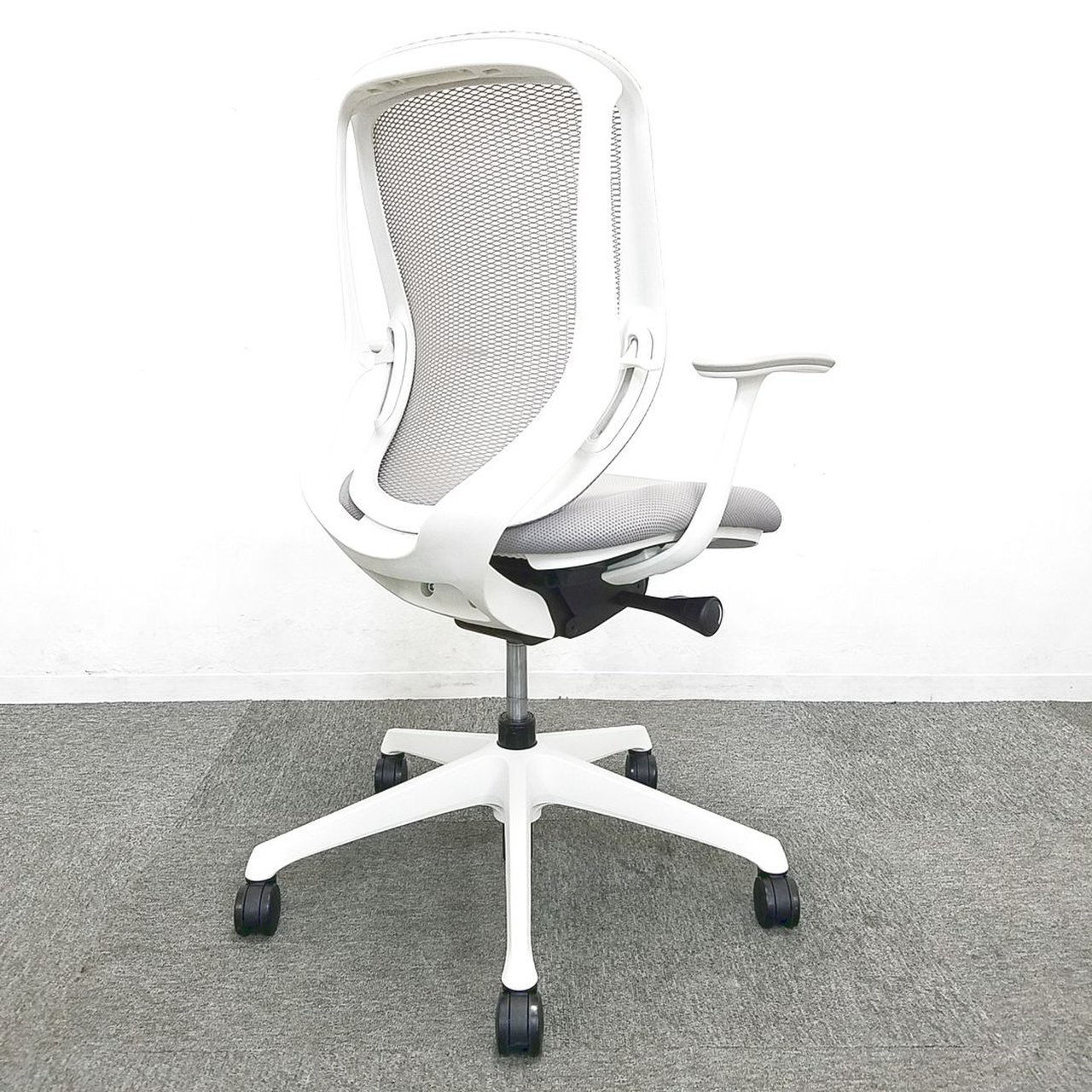 【1脚限定の為、クレジット決済優先!】オカムラ製 シルフィーシリーズ ライトグレー ホワイトフレーム デザインアーム※固定肘 コートハンガー 樹脂脚 メッシュ仕様 大人気前傾チェア 背のカーブを変えられる新感覚のオフィスシーティング 肘付きローバックチェア!!