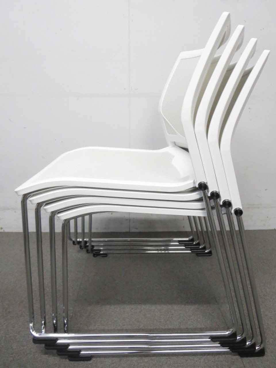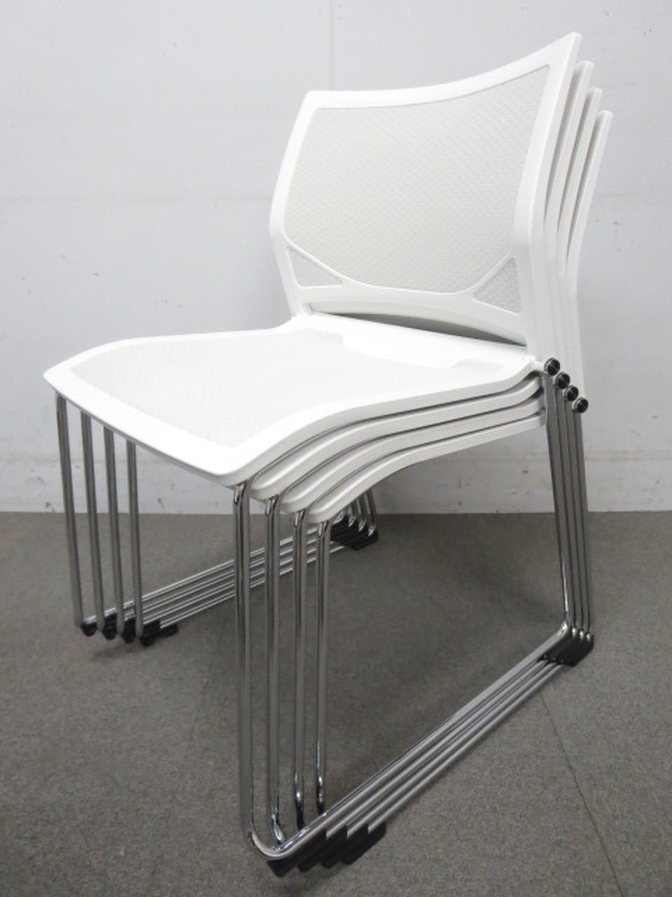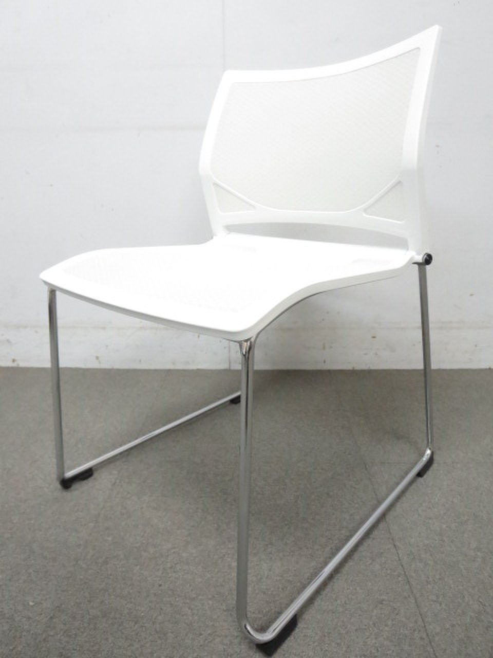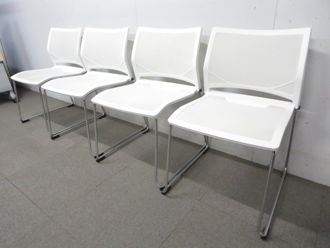 【エントランスにもオススメ!】■オカムラ製 スタッキングチェア ホワイト【おつとめ品】- 川崎店