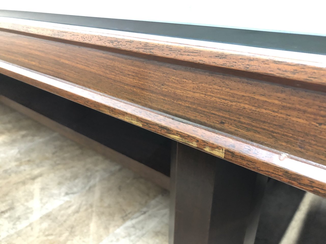 - あり黄ばみ・変色が広い範囲にうっすらある、または濃い黄ばみ・変色が一部ある。(例:三人用ソファ、二人用ソファ、一人用ソファの場合、背もたれ、肘かけ、座面等、 センターテーブルの場合、天板、脚にある。)