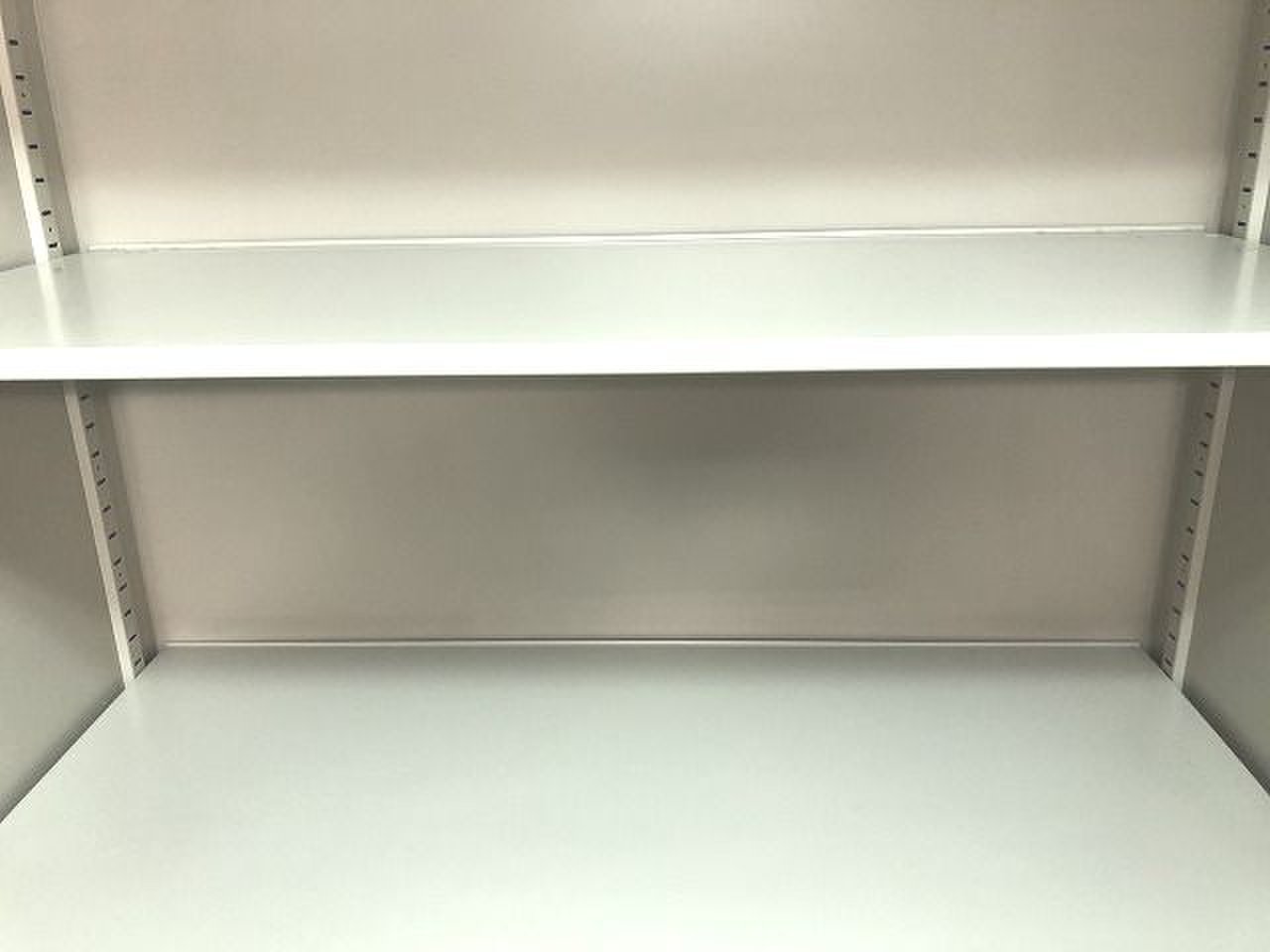 両開き書庫の丈夫に耐震用のリベット痕や使用感はありますが、