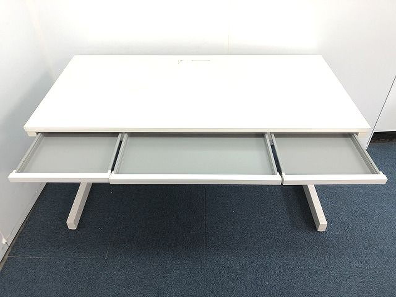 平机 内田洋行 スカエナ(SCAENA) 配線:Ktype(開閉式のカバータイプ) ホワイト天板 引き出し付き ゆったりつかえるW1400サイズ