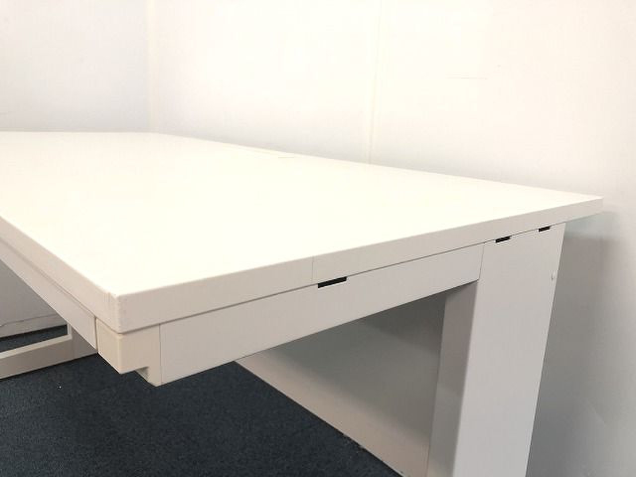 - 机の角がシャープなので、隣り合うデスクがフラットにつながります。すっきりとしたデザインです。