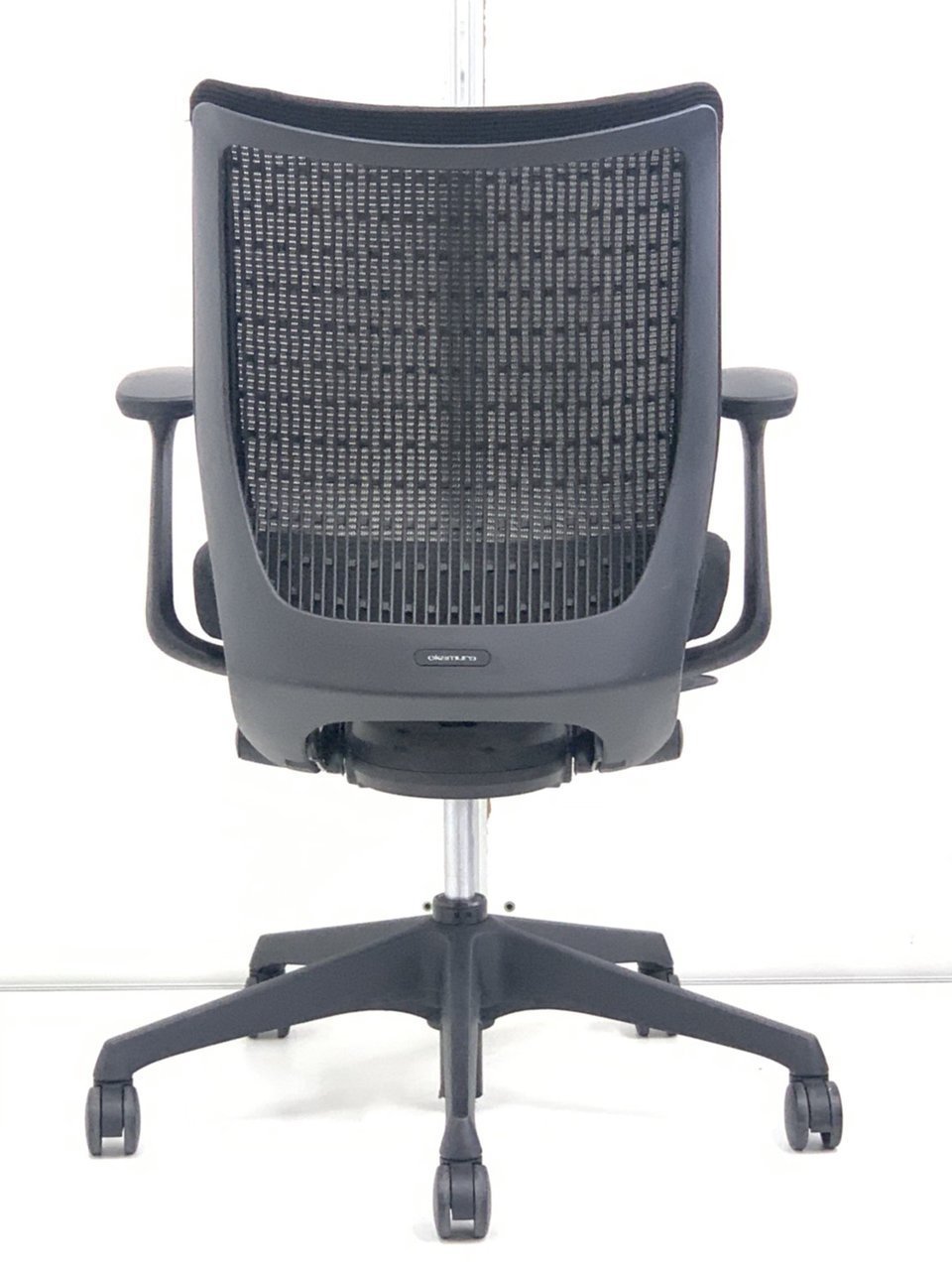 【人間工学に基づいた快適な座り心地!背によりかかるとバックシェルのグリッドが変形し、やさしくワーカーの身体を支えます!】■オカムラ(okamura)製 ヴィスコンテ(Visconte)チェア 肘付きローバック ■可動肘 ■色:ブラック【IB】