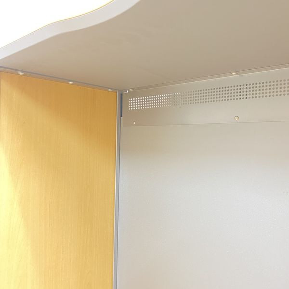 天板奥側にはくぼみがあり受付無人電話などを設置しても配線を収納できるので