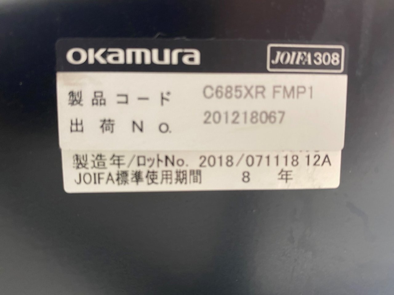 【中古】 シルフィー C685XR FMP1 オカムラ/okamura 肘付ハイバックチェア 303004