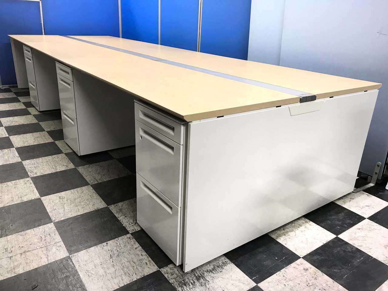 【4名様セット!】デスク+ワゴンセット!フリーアドレスデスクは引き出しが無いので、収納としてお使いいただけます!- 足立・葛飾店
