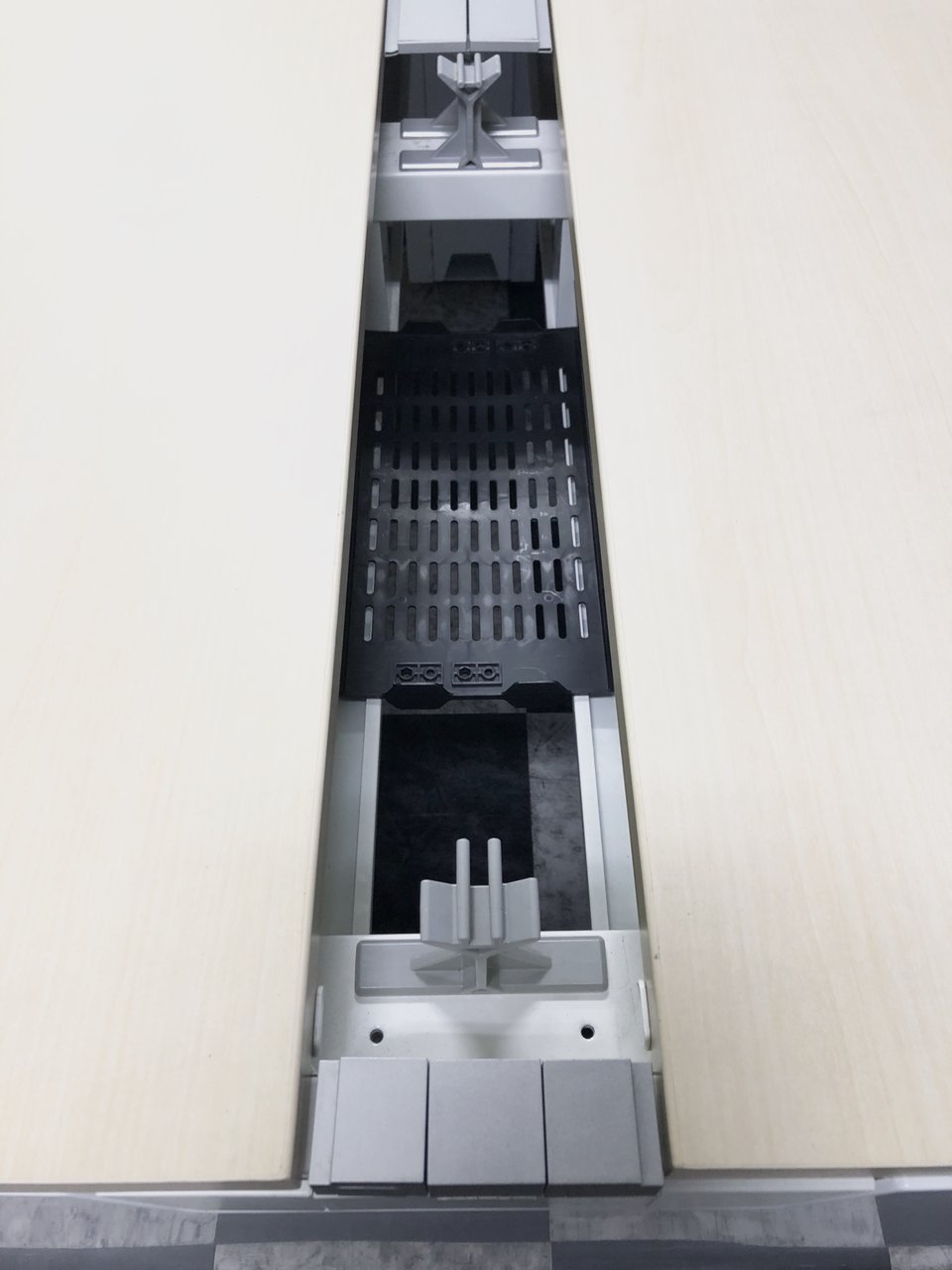 天板サイズはW1400×D600×H50が合計4枚と配線カバーで構成されます。