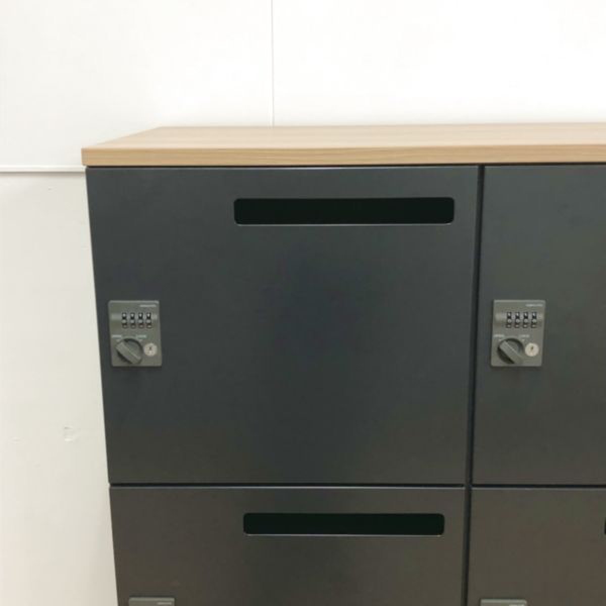 洗練されたオフィス空間|ブラック×ラスティックミディアム天板付き|コクヨ エディア ダイヤルロック錠 6人用- 名古屋千種店