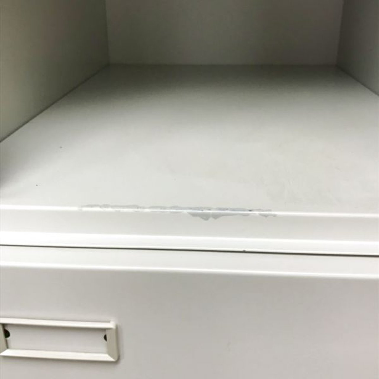 - かなり強い黄ばみ・変色が商品全体にある。(例、天板、正面、背部、サイド部分にある。)