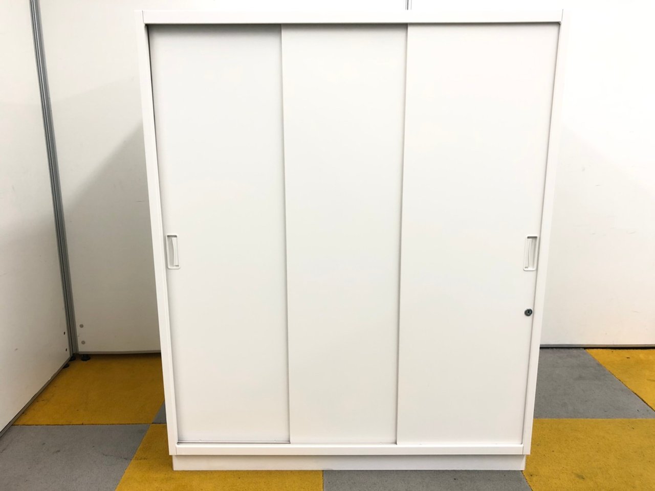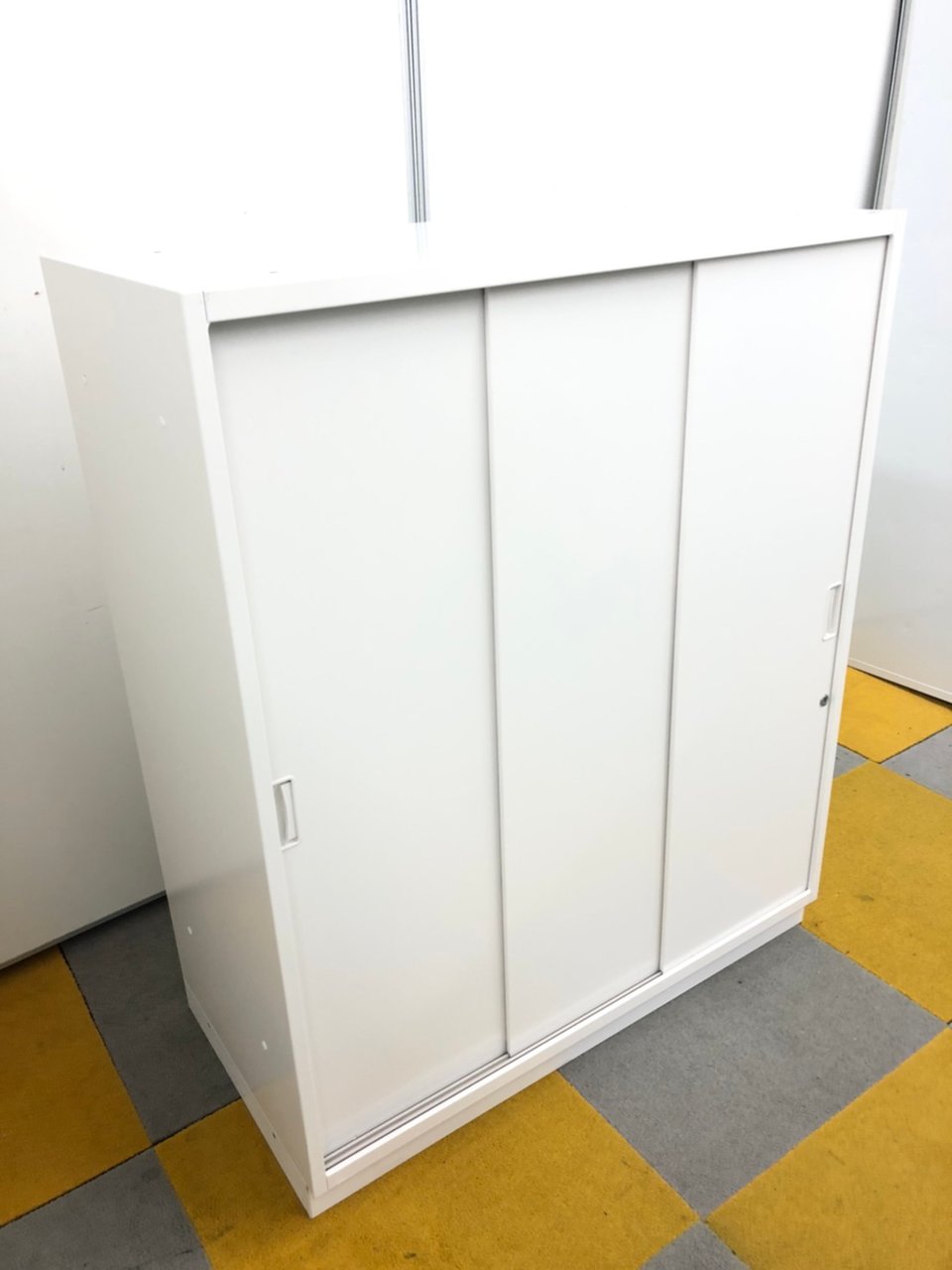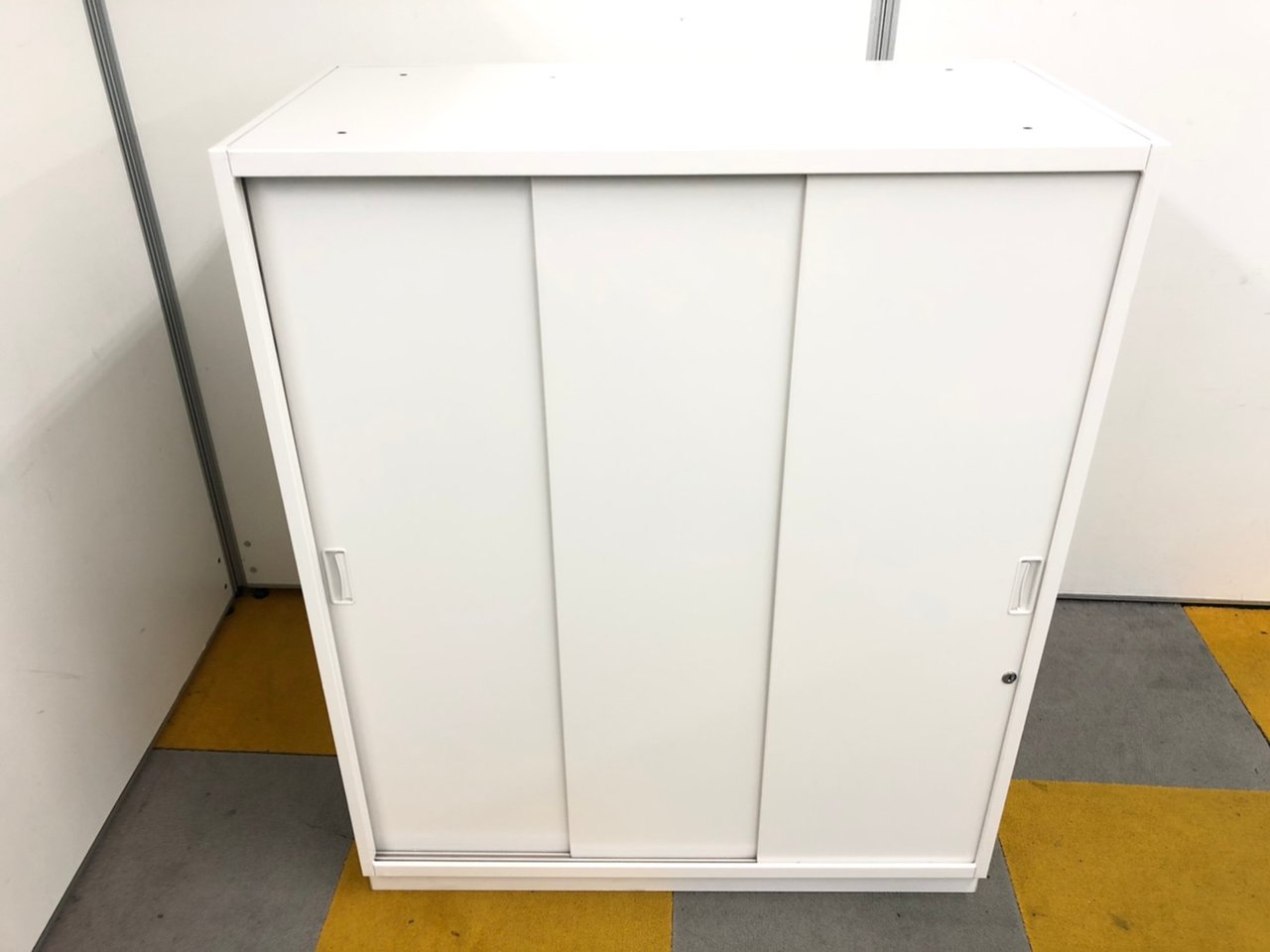 【イトーキ製の開閉スペースを確保した人気のキャビネット!】■3枚引き違いキャビネット ■イトーキ ■シンライン ■幅800mm×奥行き450mm×高さ1100mm 鍵付き書庫 オフィスバスターズ東大阪店