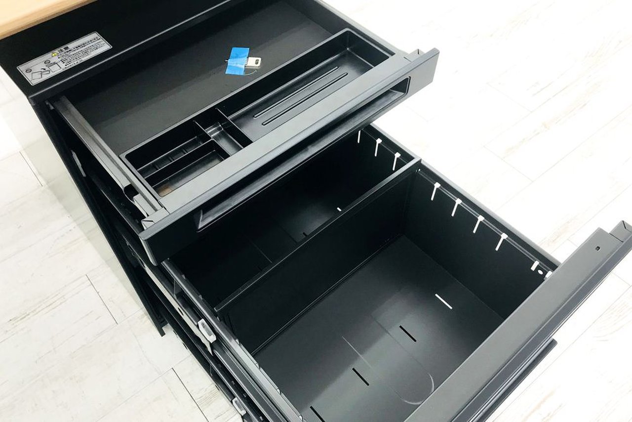1400㎜と幅広いデスクで、A3サイズの用紙も広げて作業ができます。
