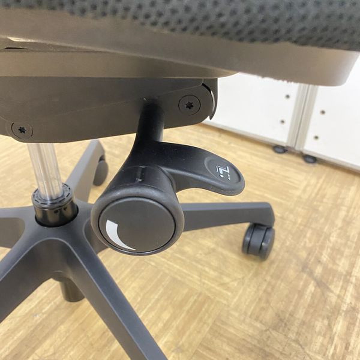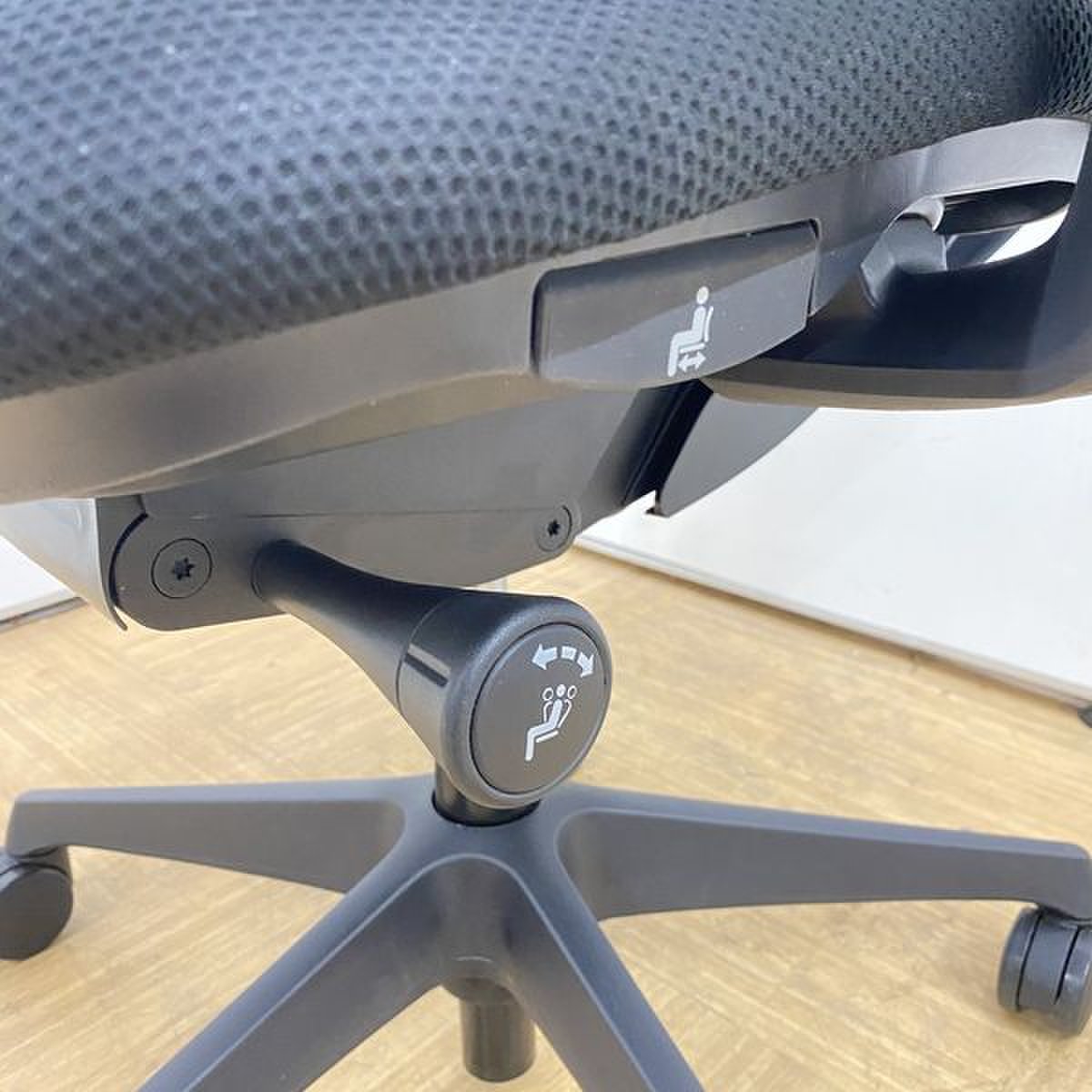 - 座面右下のダイヤル操作で、リクライニングの強弱調整が行えます。これまでのダイヤル式よりも、少ない回転数で、最弱?最強の調整が可能です。