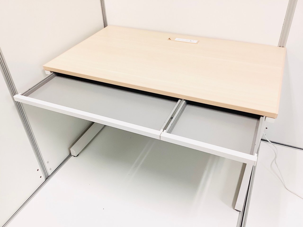 【在庫入替セール】【3台限定!】ウチダ製 スカエナシリーズ Kタイプ ナチュラル天板 W1200サイズ 平机 配線カバー 引出し付 おしゃれ