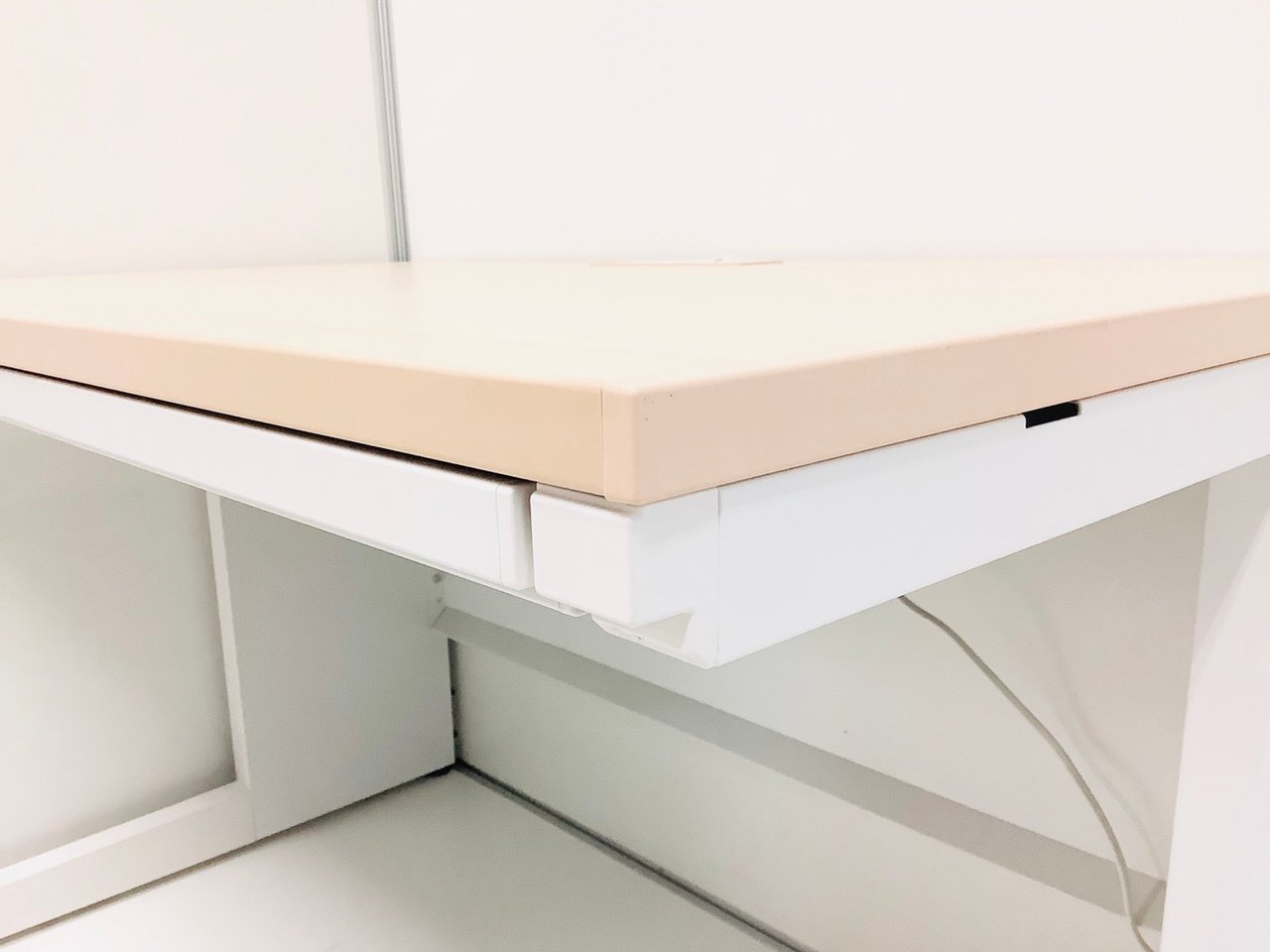 - 机の角がシャープなので、隣り合うデスクがフラットにつながります。すっきりとしたデザインです。