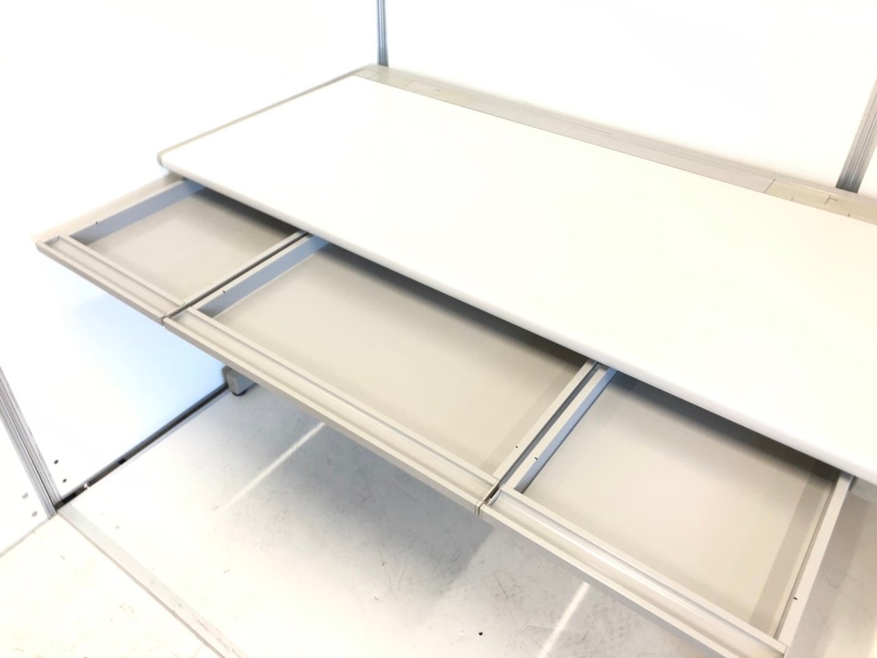 広々とした倉庫スペースに豊富な在庫がございます。オフィス家具が中古で一式そろいます!