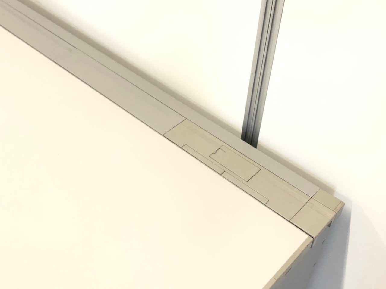 - 天板にコードホールが2ヵ所あり、レイアウト自在です。天板と幕版の間に30mmのすき間があり、対向配線も容易です。