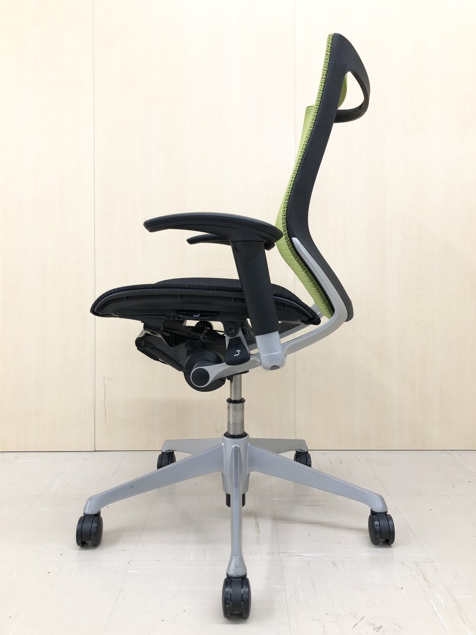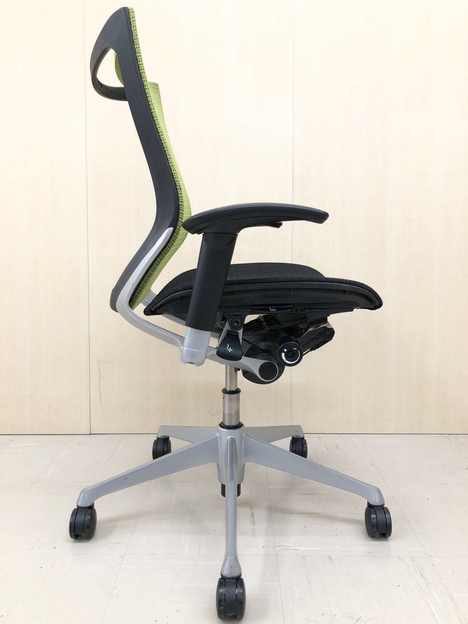 気に入っているのはリクライニング調整の自由さです。同じオカムラ社製の上位モデルや下位モデルも、角度が5段階程度の固定位置だったり、リクライニング強度も4段階だったりしますが、バロンチェアはどちらも無段階。つまり完全に好きな位置、好きな強度に調整することができます。