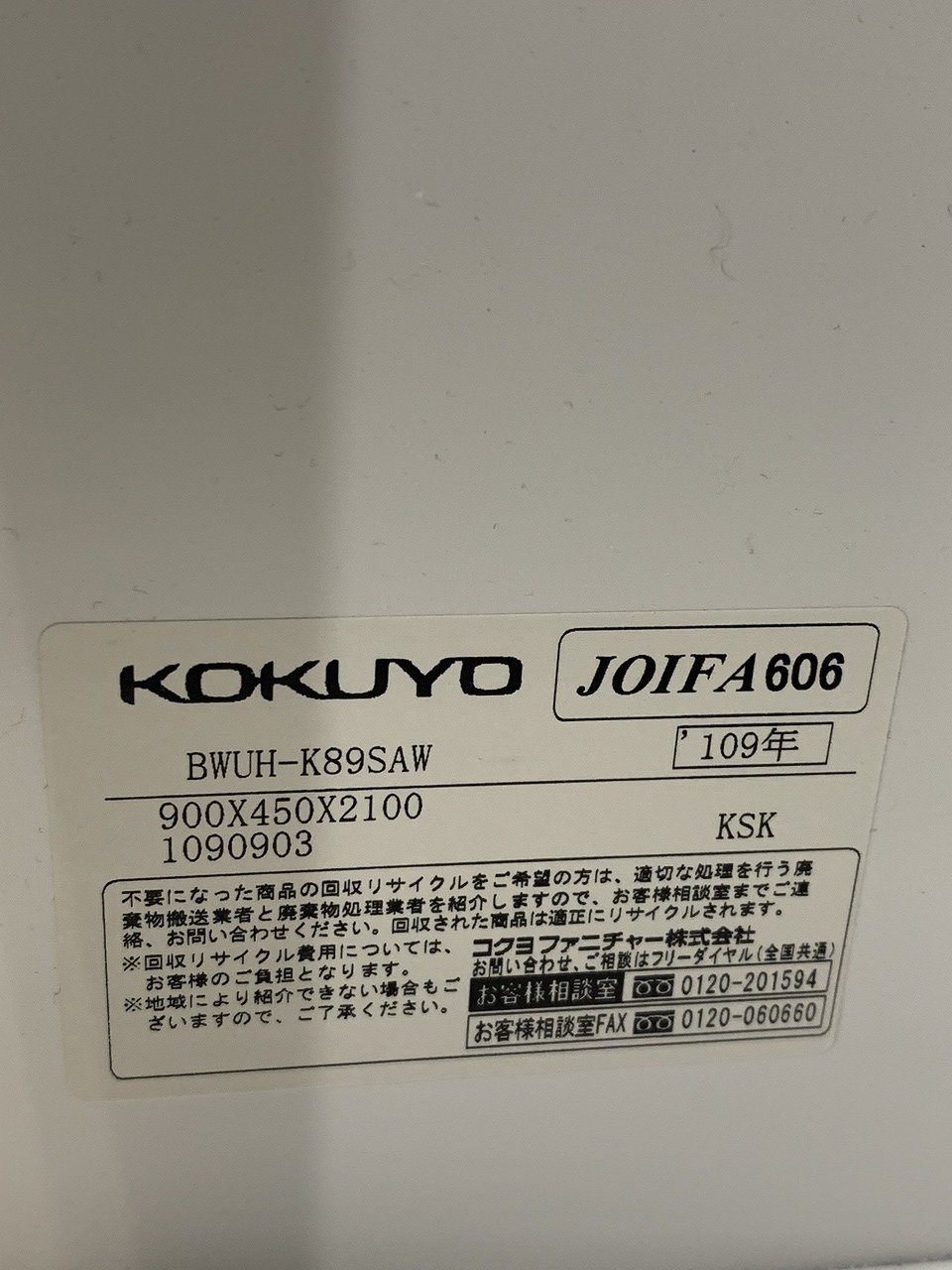 - 一部不具合ありそ引出の開閉不可、施錠不可、棚板無しといったの書庫の本来の効用を果たすための機能以外の一部が使用不可(例、扉、引出の開閉がしづらいなどがある。 )