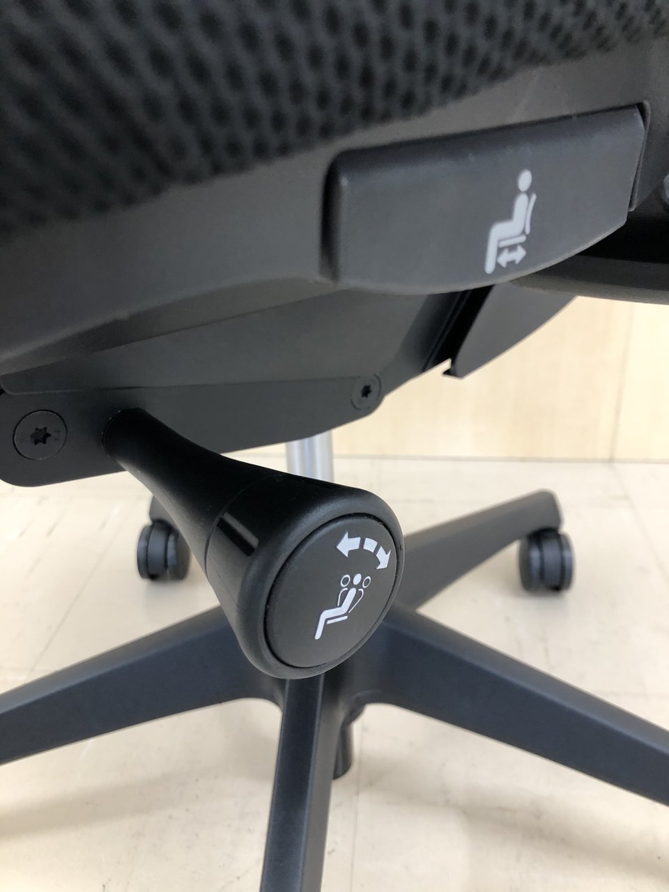 - 座面右下のダイヤル操作で、リクライニングの強弱調整が行えます。これまでのダイヤル式よりも、少ない回転数で、最弱?最強の調整が可能です。