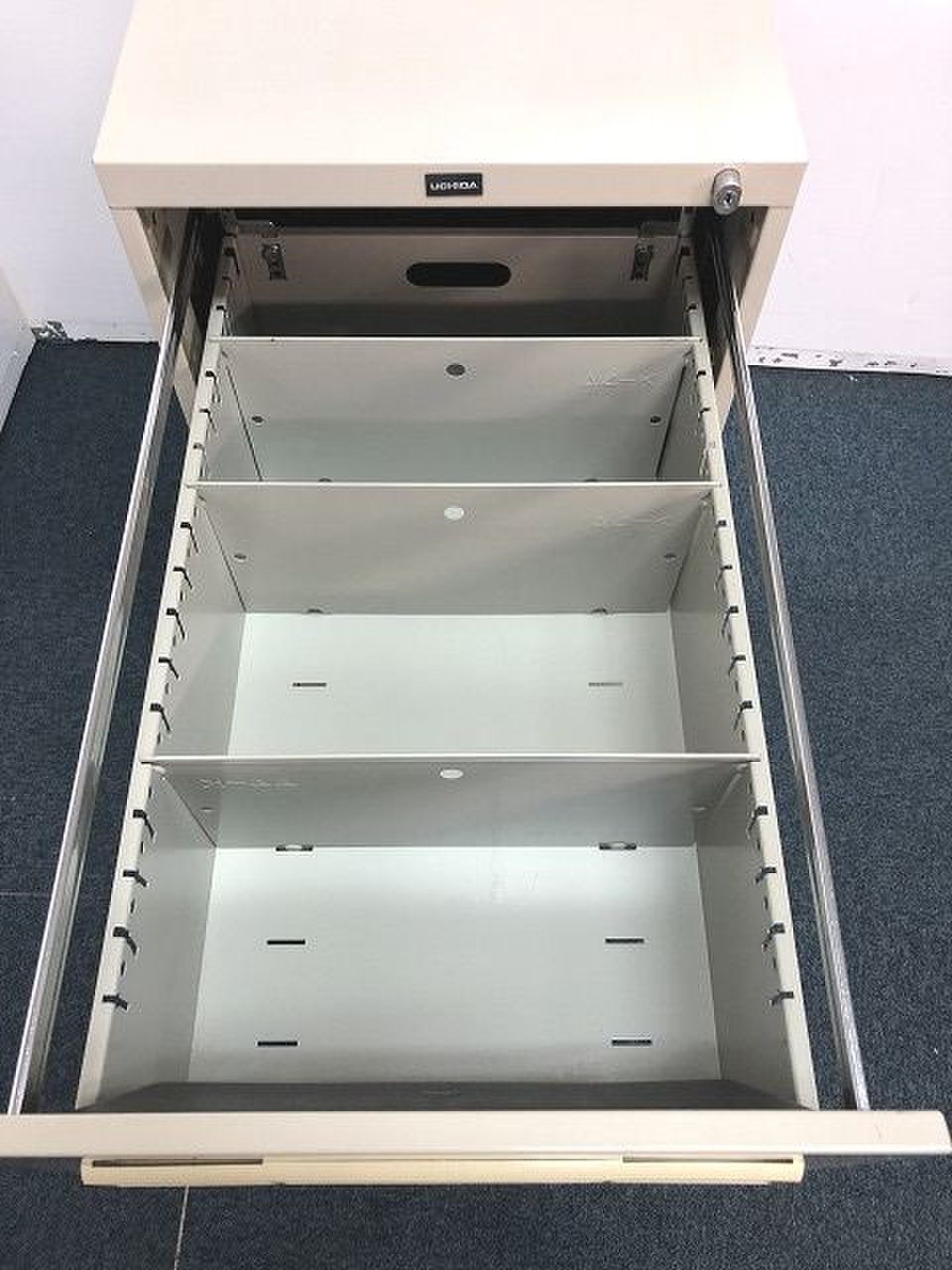 【人気商品!!3段キャビネットの入荷です!!】【おつとめ品】【※2段目の扉が開閉ロック破損】■内田洋行【I】- 仙台店