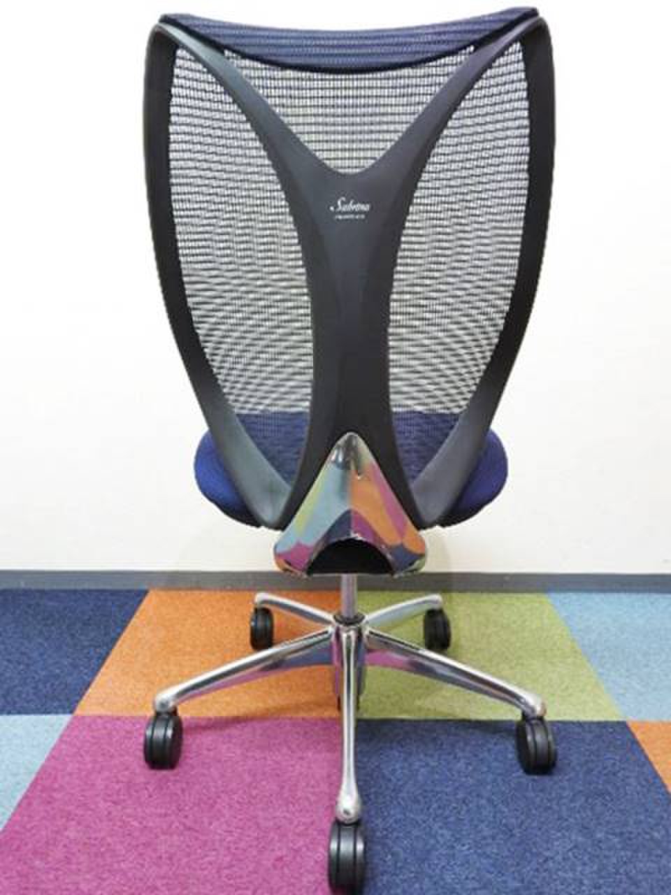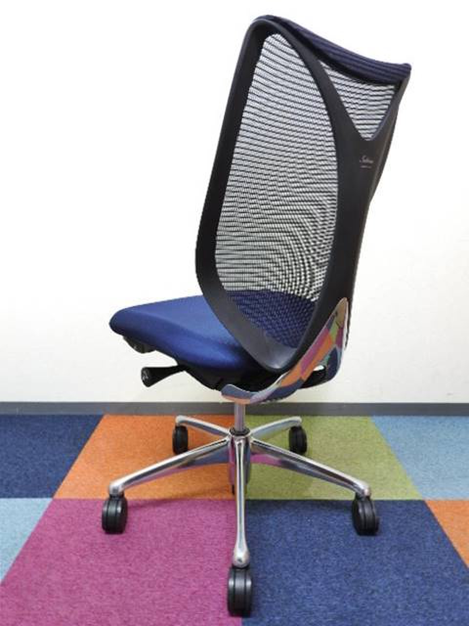 オカムラ製 サブリナ ダークブルー ブラックフレーム 肘無し ハイバック 背面メッシュ ランバーサポート付 前傾チルト付きで作業効率アップ! 流れるような美しいフォルムの最高級メッシュチェア! 肘無しハイバックチェア!!