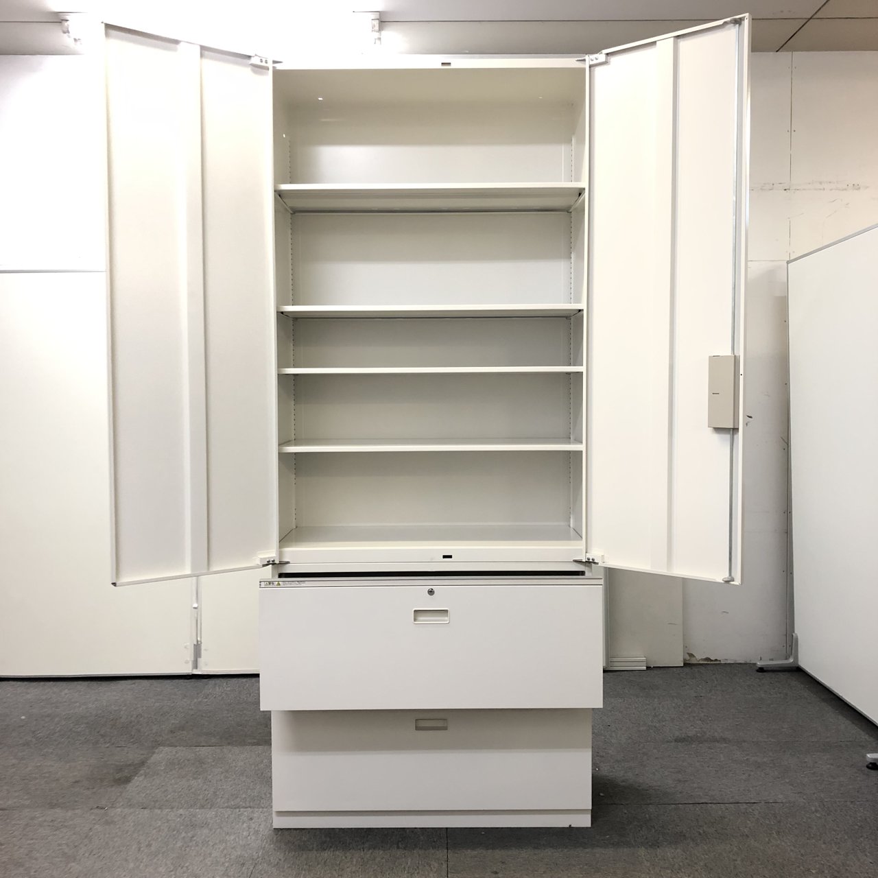 【珍しい2段ラテラルタイプ!】耐久性・機能性を兼ね備えたキャビネット!スペースにジャストフィットする引き出し型収納 ■イトーキ/シンライン/ホワイト シリンダー錠
