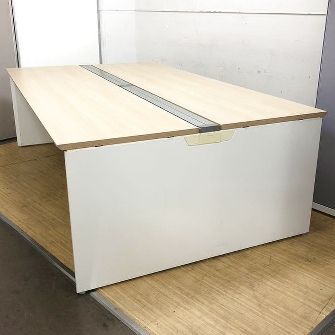 【限定1台】オカムラ プロユニットフリーウェイ フリーアドレスデスク W2400×D1400 天板:ネオウッドライド 脚:ホワイト 4名掛け想定 1人当たりW1200の使いやすい定番サイズ