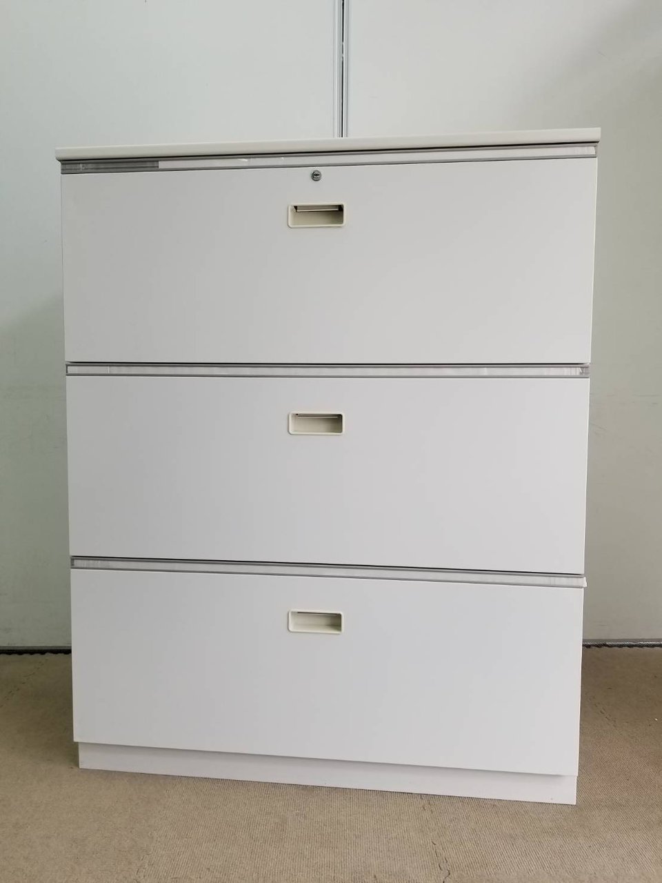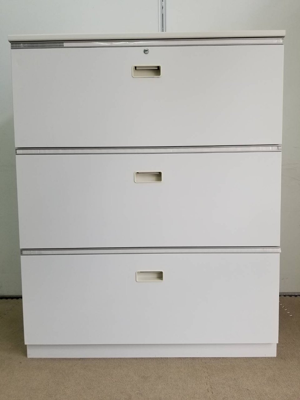 【A4ファイルも沢山収納可能!ホワイトカラーの人気シリーズ3段ラテラル書庫!】/オススメ(おすすめ) /人気商品【弊社使用欄:A01013834】3段ラテラル書庫/ローキャビネット/天板付き/ホワイト/シリンダー錠/ITOKI/THIN LINE■イトーキ/シンライン※取っ手部分日焼あり