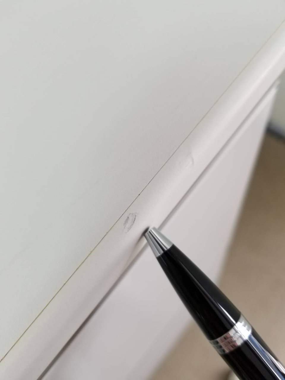 - 目立つ箇所あり傷・凹みが多数、深い傷・凹みが一部ある。(例、天板、正面、背部、サイド部分にある。)