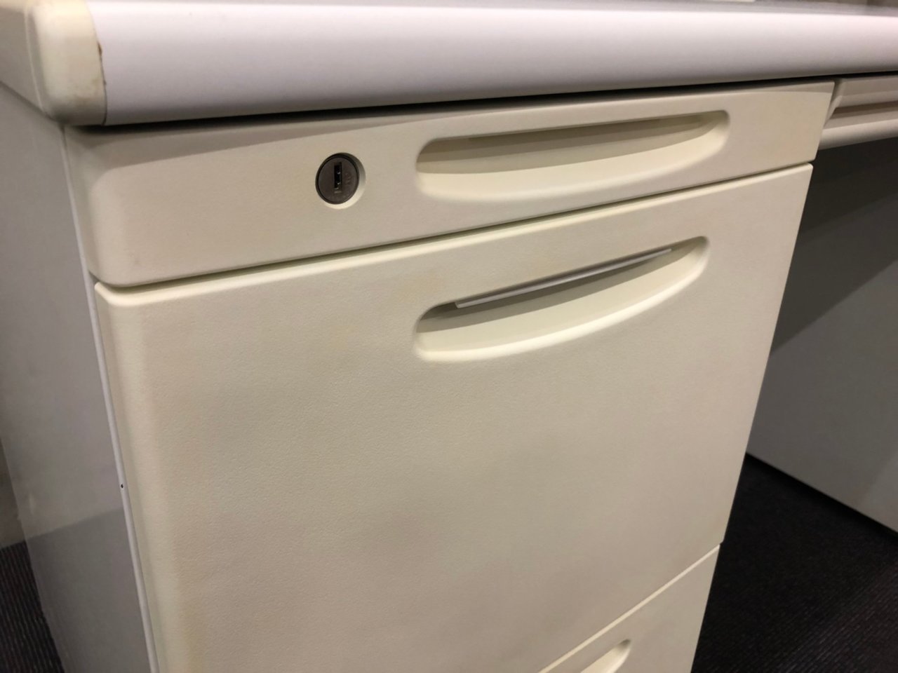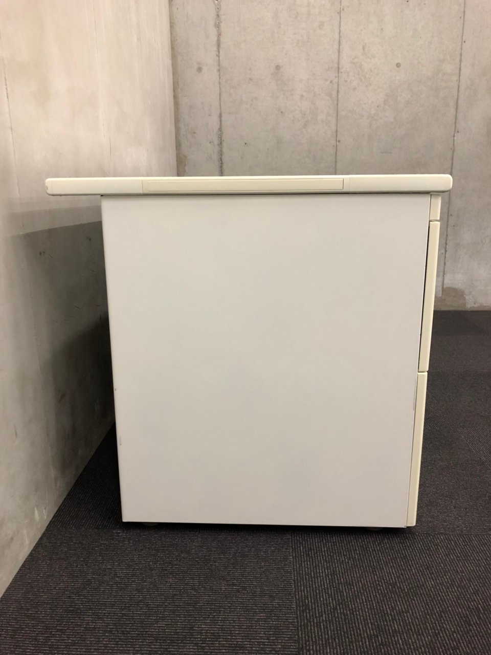 - 袖机のワゴンは、最下段がロング引出しになっており、従来より収納力120%アップ。
