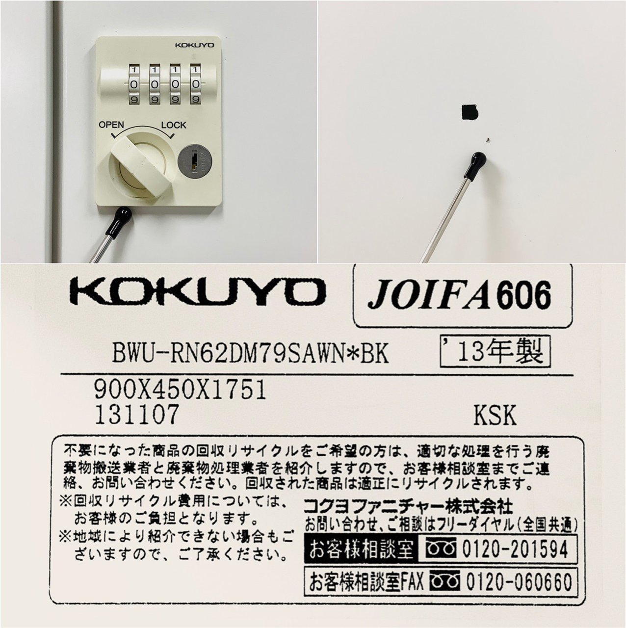 - 一部不具合あり扉の開閉不可、施錠不可といったそのロッカーの本来の効用を果たすための機能以外の一部が使用不可な状態※扉の開閉がしづらい等がある。
