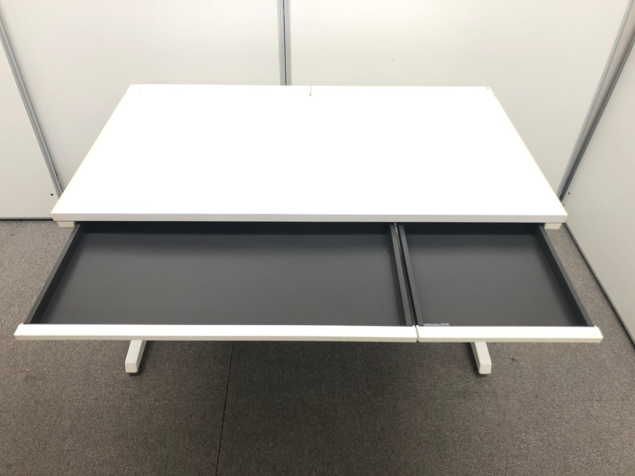 広々とした倉庫スペースに豊富な在庫がございます。オフィス家具が中古で一式そろいます!
