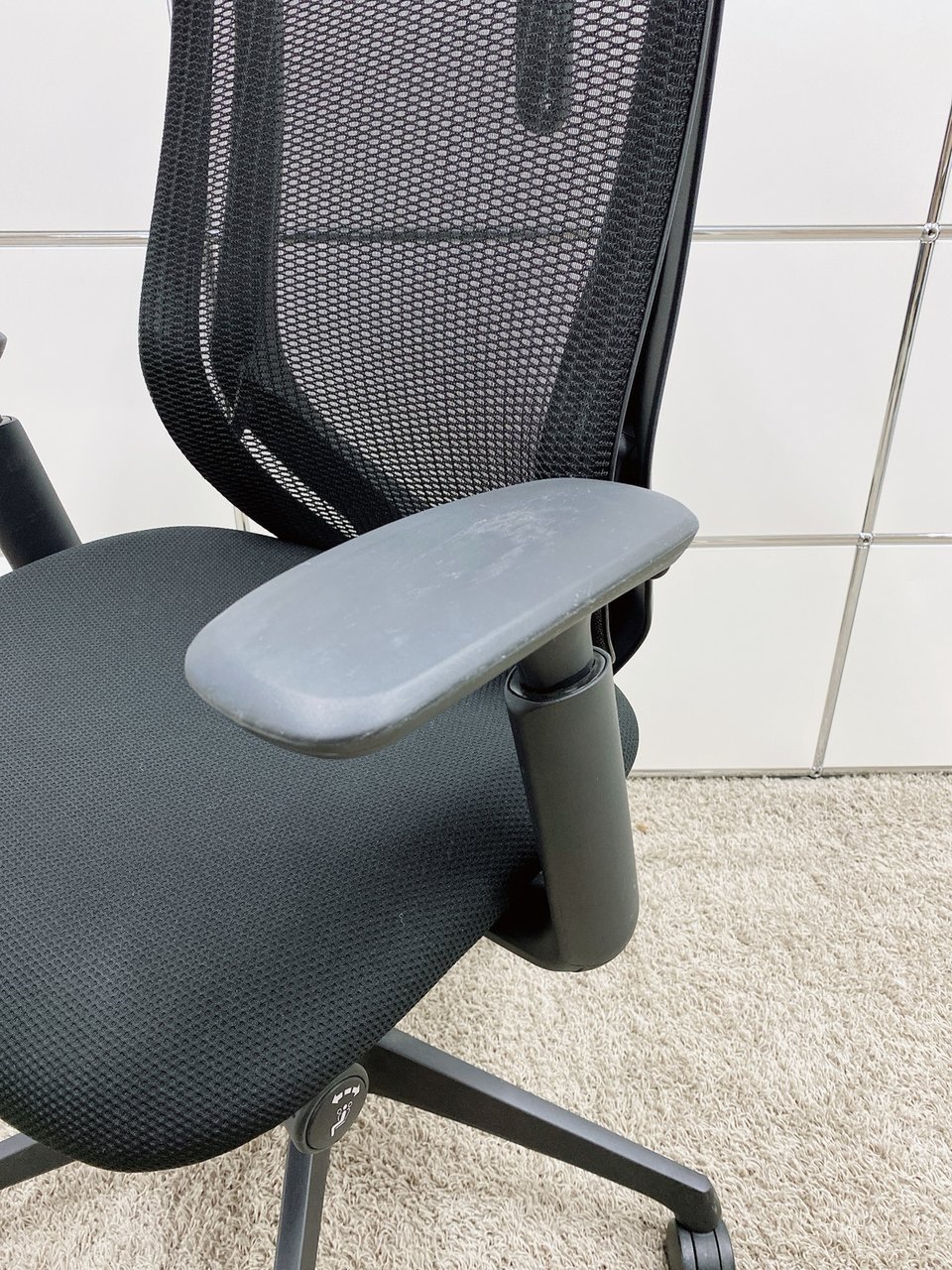 【前傾チルト機能付き!オカムラ製品で最も人気を集める高機能メッシュチェア!】■オカムラ(okamura)製 シルフィ(Sylphy)チェア 肘付ハイバック 背面メッシュ ■ブラック ■可動肘 オフィスバスターズ 神戸・三宮店