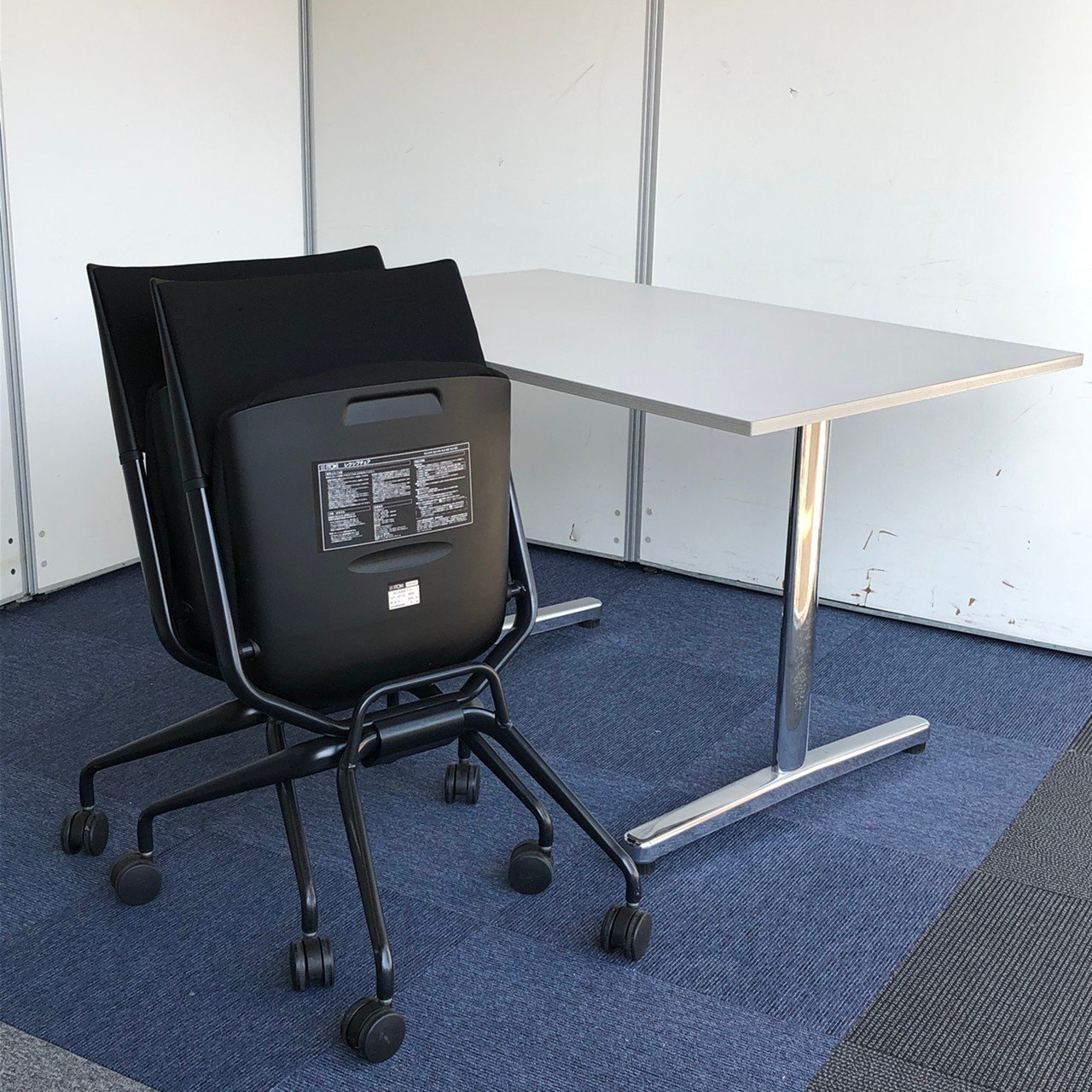 シックな黒色『レクシブ』チェアと横幅1200㎜のミーティングテーブル。セット価格にてご案内- 神戸・三宮店