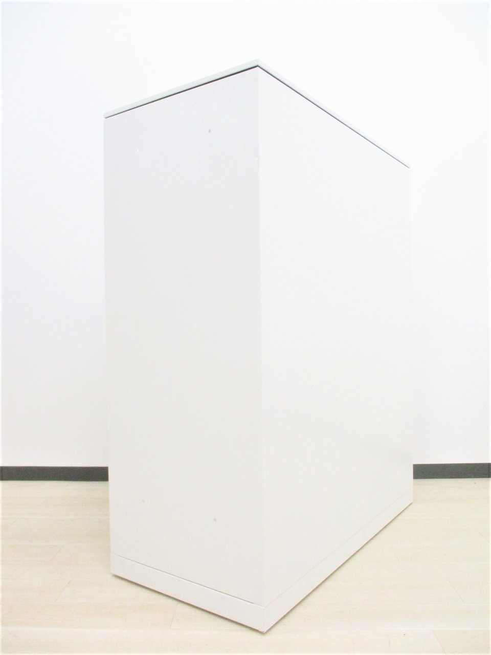 【オフィスの書類をスッキリ整理! 扉の無いタイプなので資料探しがラクラク!】■オカムラ(okamura)製 レクトライン(Rectline)シリーズ オープン書庫 ローキャビネット ■色:ホワイト ※扉外し商品のため外し跡がございます。