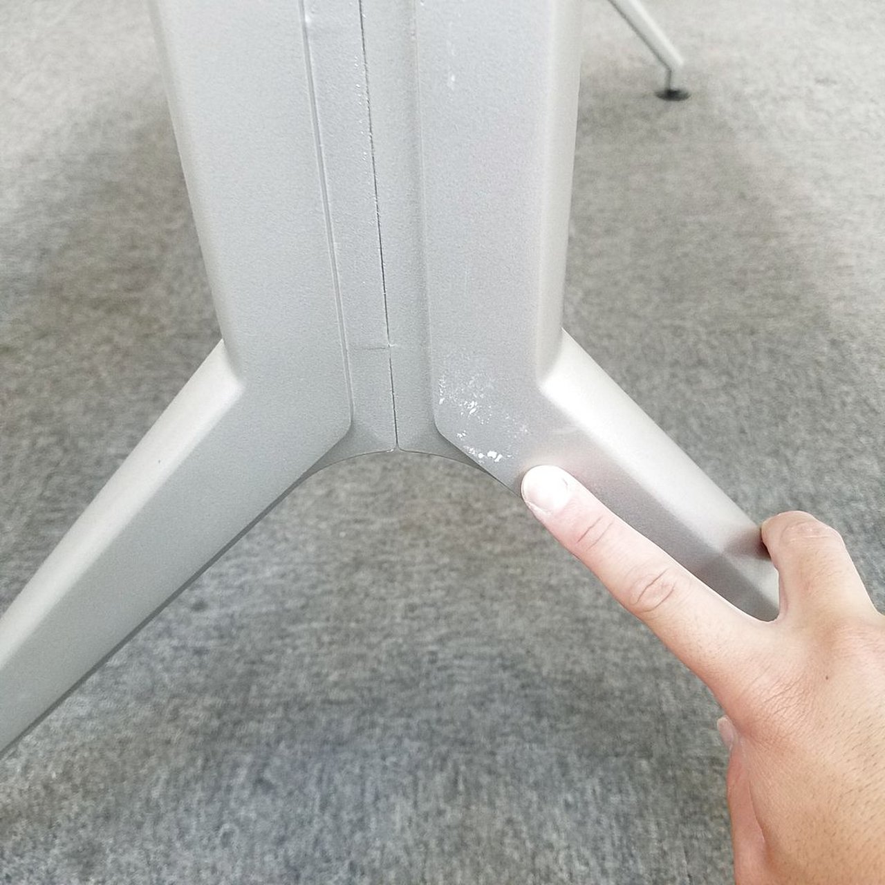 - 壊れている天板歪み、アジャスター無し、キャスター使用不可のようにそのテーブルの本来の効用を果たすための機能に不具合がある。