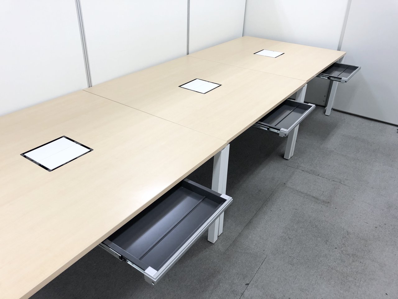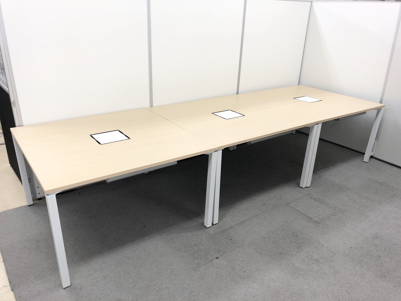 【遠方倉庫在庫品】コクヨ製のミーティングテーブル(ワークテーブル) 天板 ナチュラル メラミン化粧板 脚:フラットシルバー 【RA】