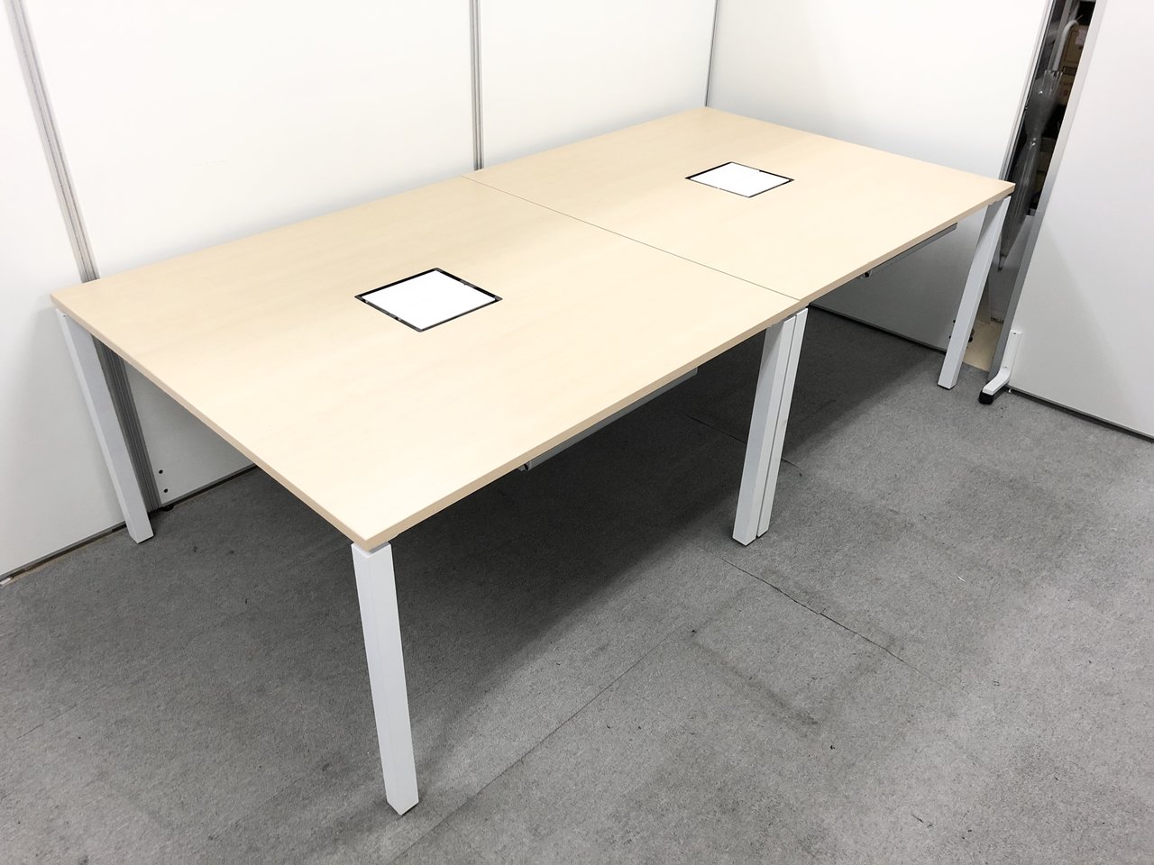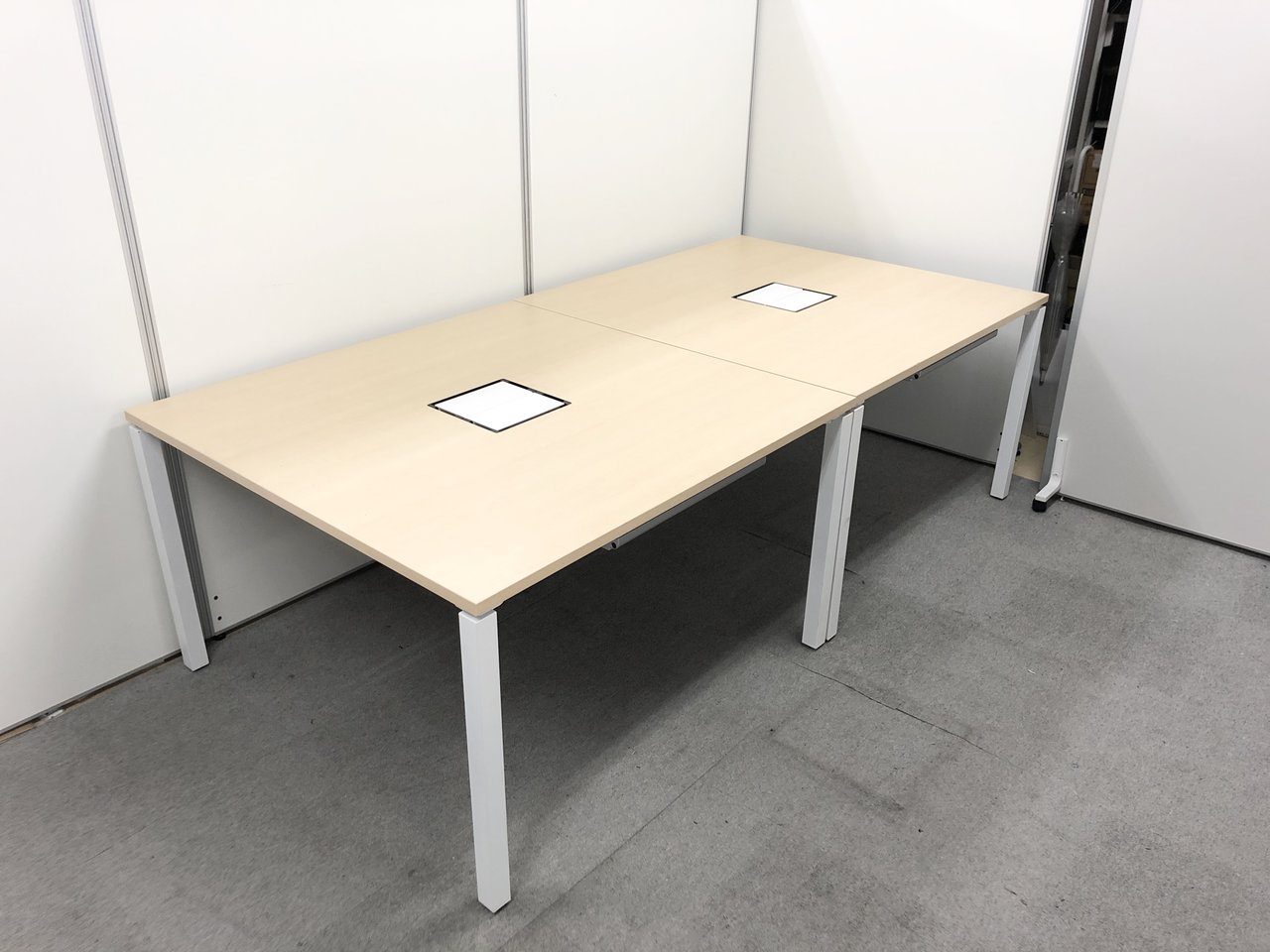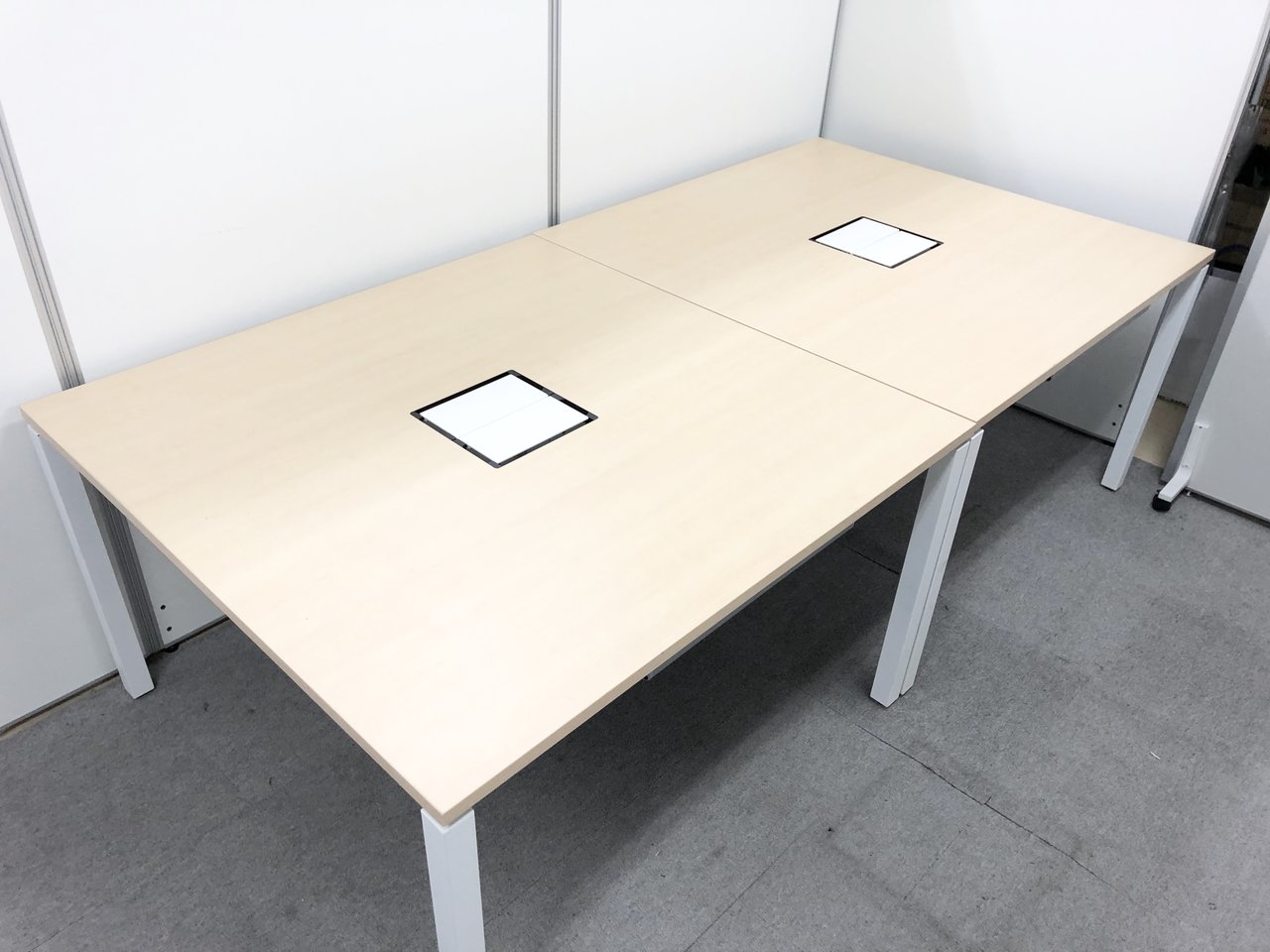 【遠方倉庫在庫品】コクヨ製のミーティングテーブル(ワークテーブル) 天板 ナチュラル メラミン化粧板 脚:フラットシルバー 【RA】