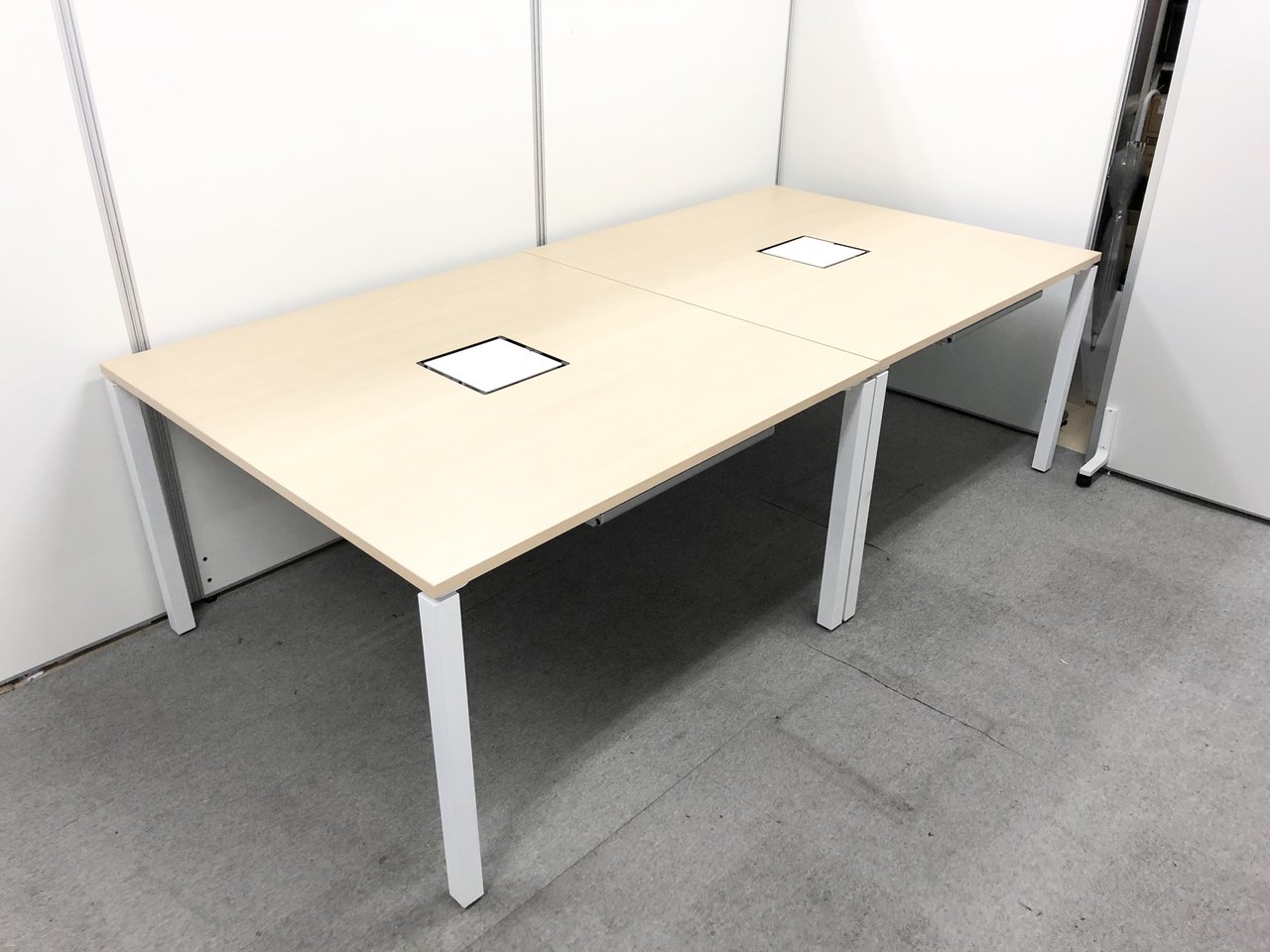 【遠方倉庫在庫品】コクヨ製のミーティングテーブル(ワークテーブル) 天板 ナチュラル メラミン化粧板 脚:フラットシルバー 【RA】
