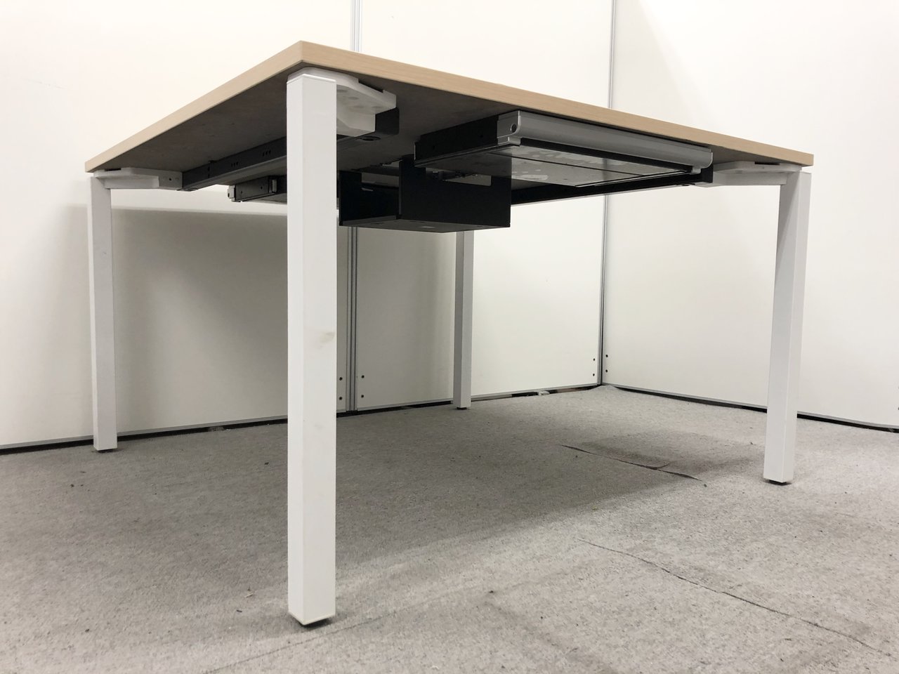 【在庫セール品・2台限定】【T12】■コクヨ製 ワークフィット ミーティングテーブル W1200×D1400㎜ ■配線カバー付き ■木目ナチュラル【配線カバー付きなのでデジタルツールを用いた会議にオススメ!】