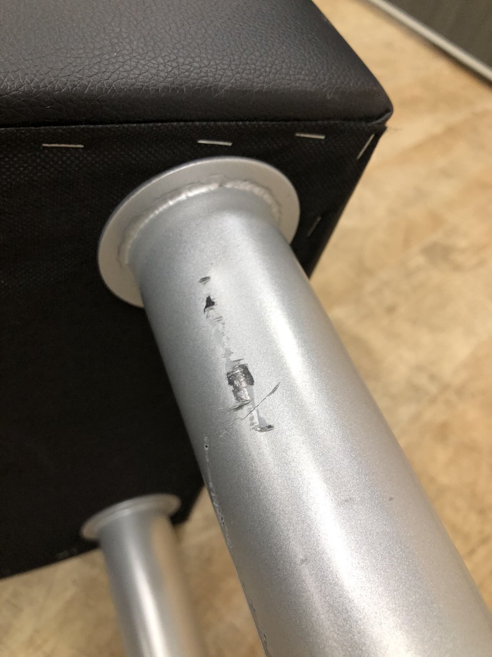 - かなり強い濃い黄ばみ・変色が商品全体にある。(例、座面・背もたれ、脚部等にある。)